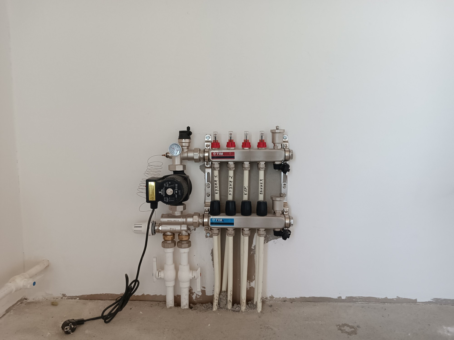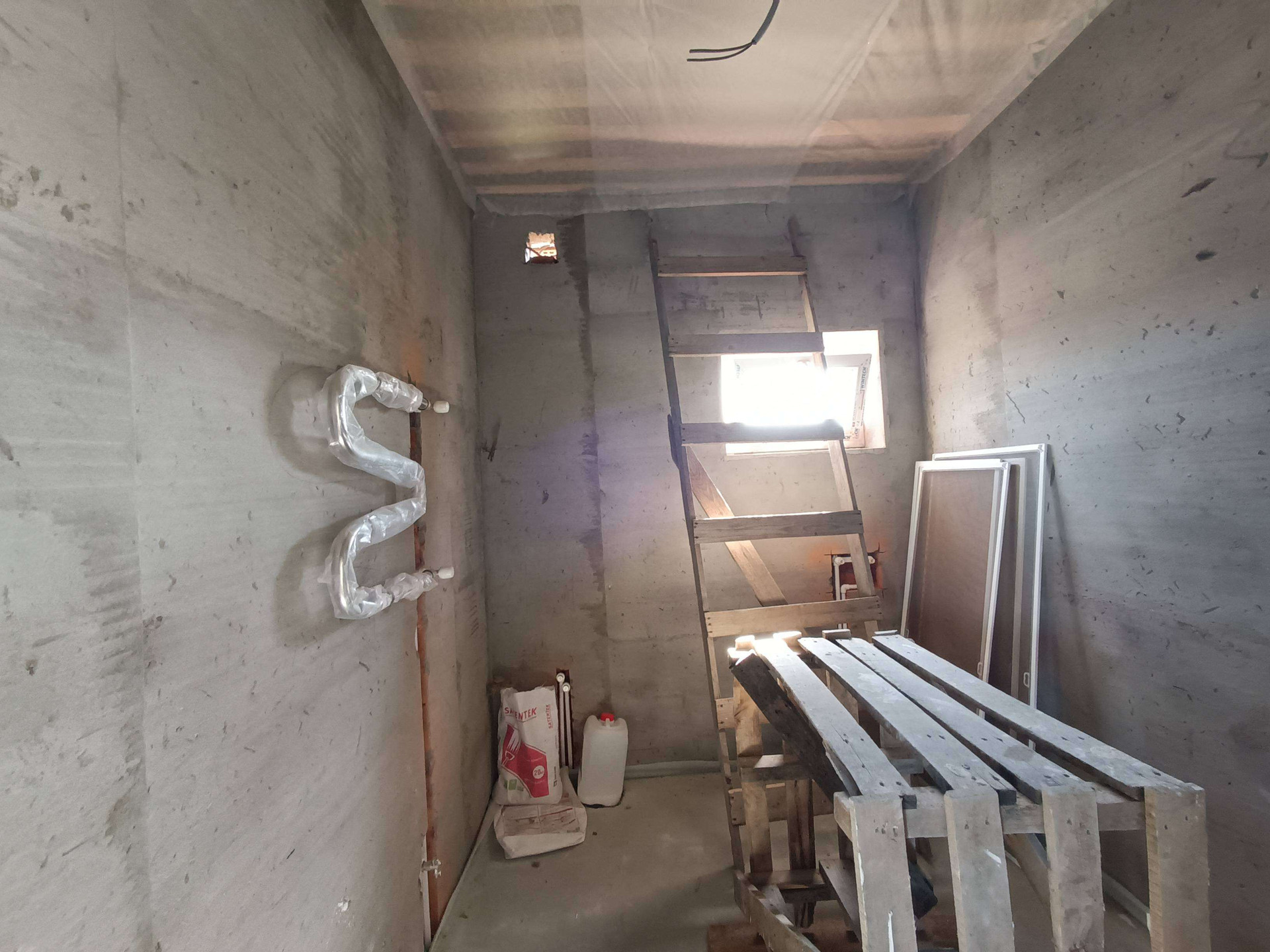 электропроводки во всех комнатах, а также монтаж труб канализации и водопровода по всему дому.
