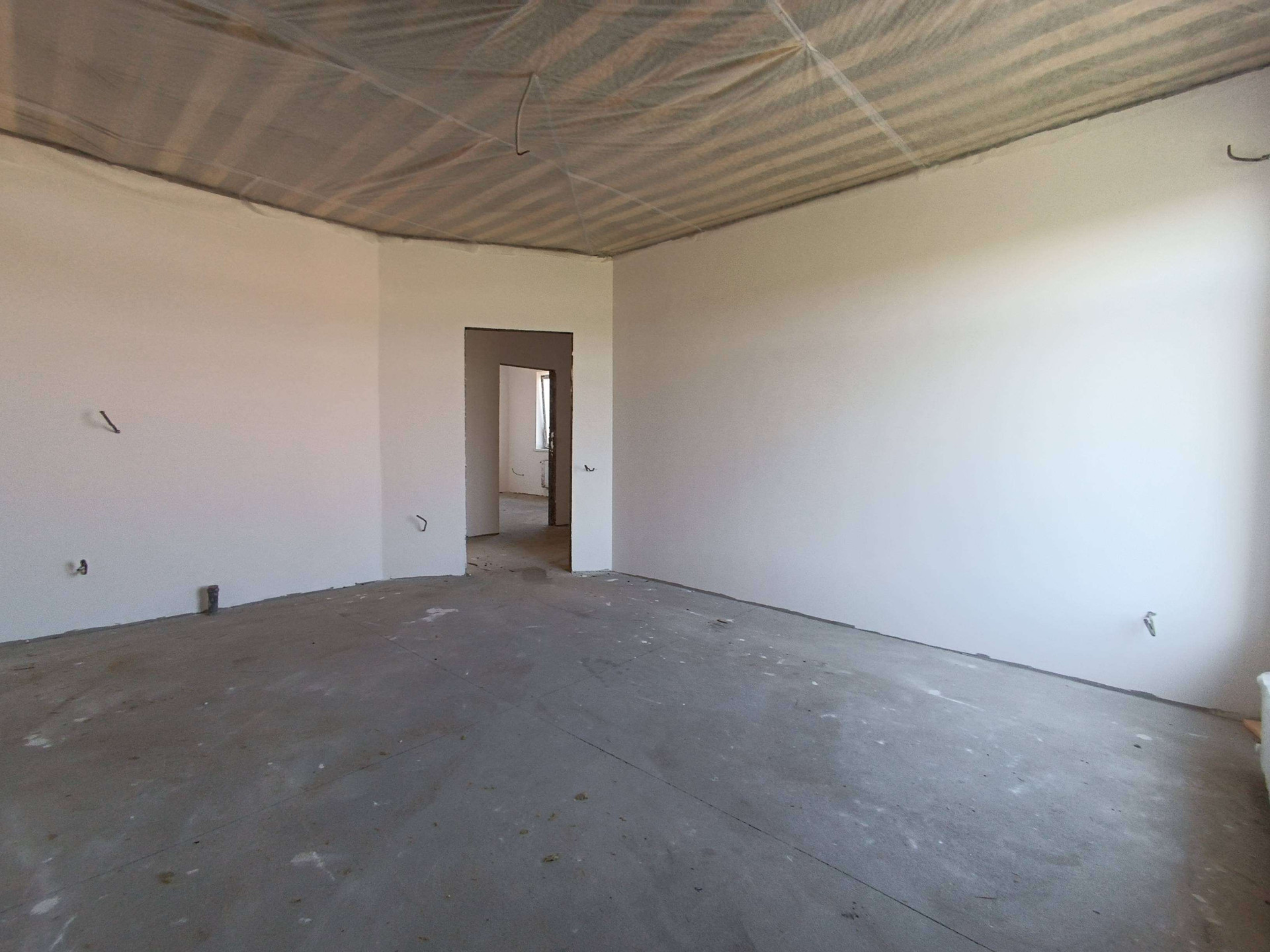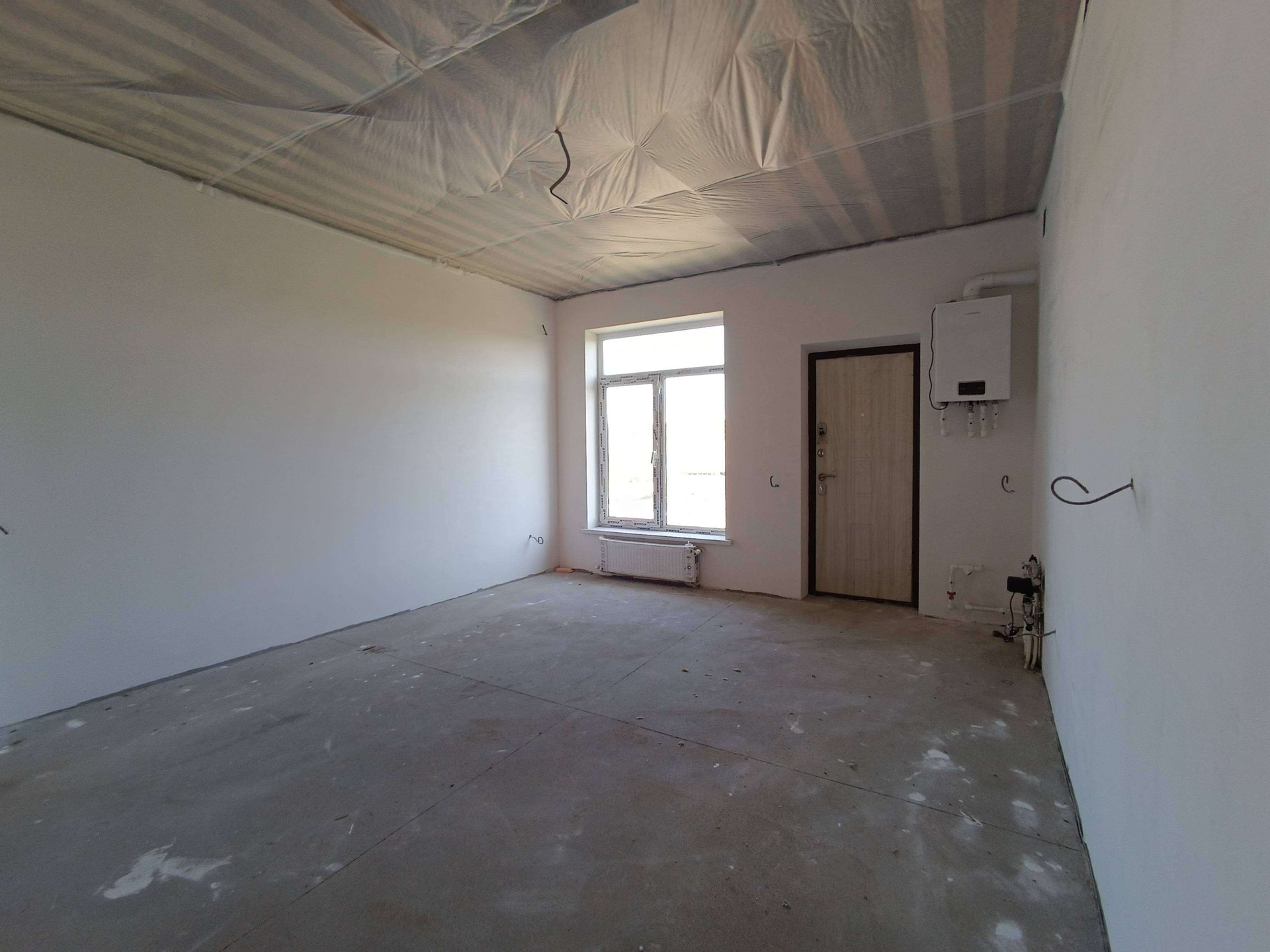оштукатурены, полы залиты бетонной
