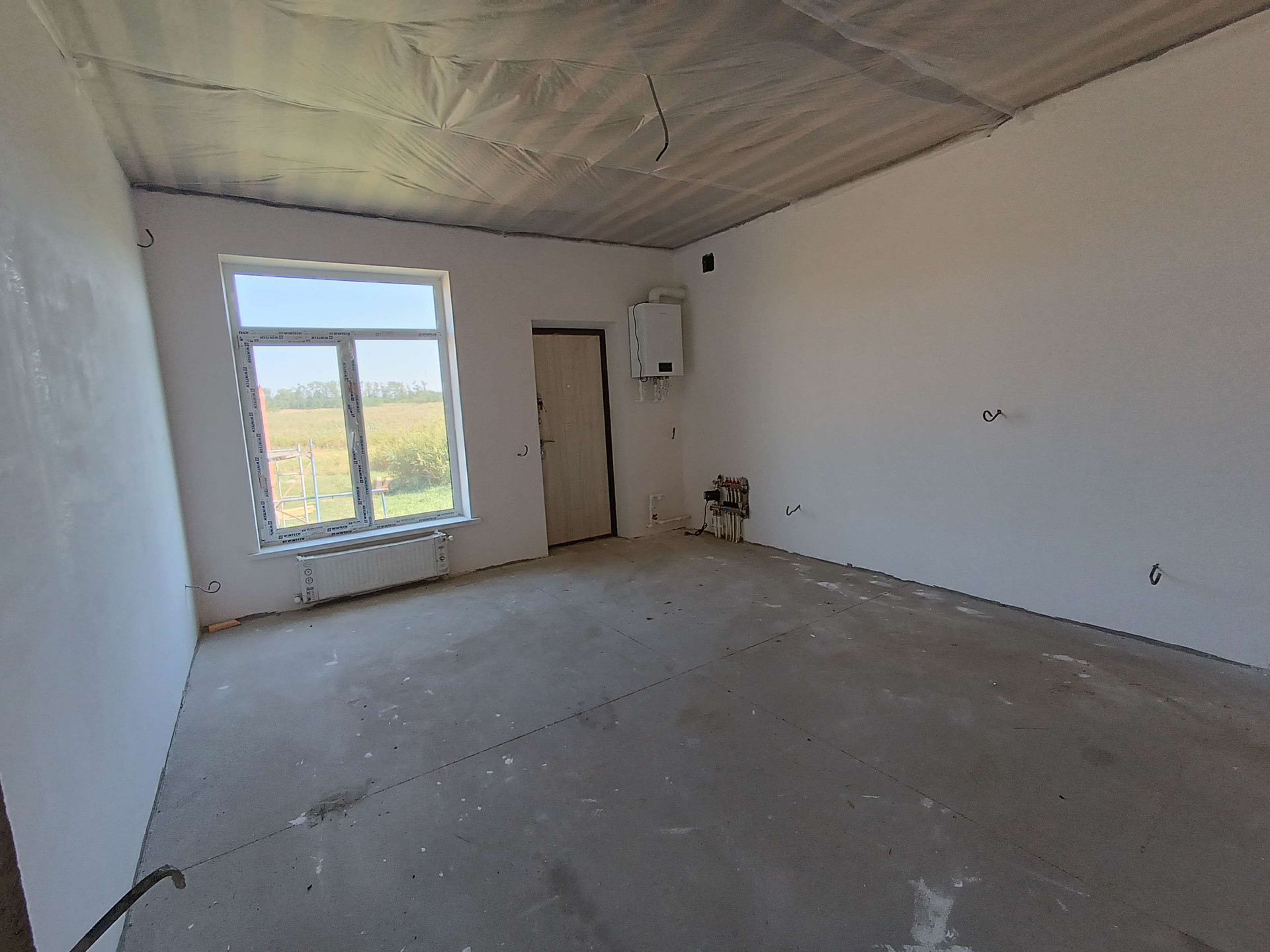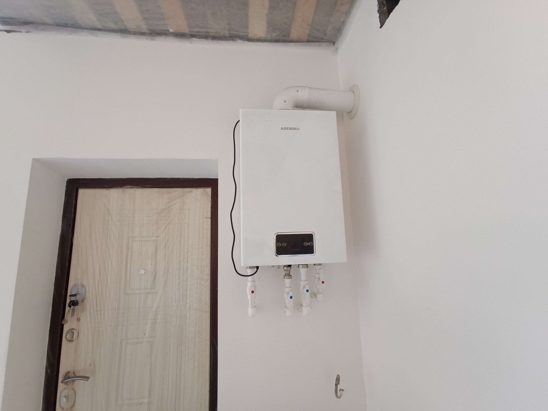 Выполнена разводка отопления с установкой радиаторов и двухконтурного газового котла. Установлены