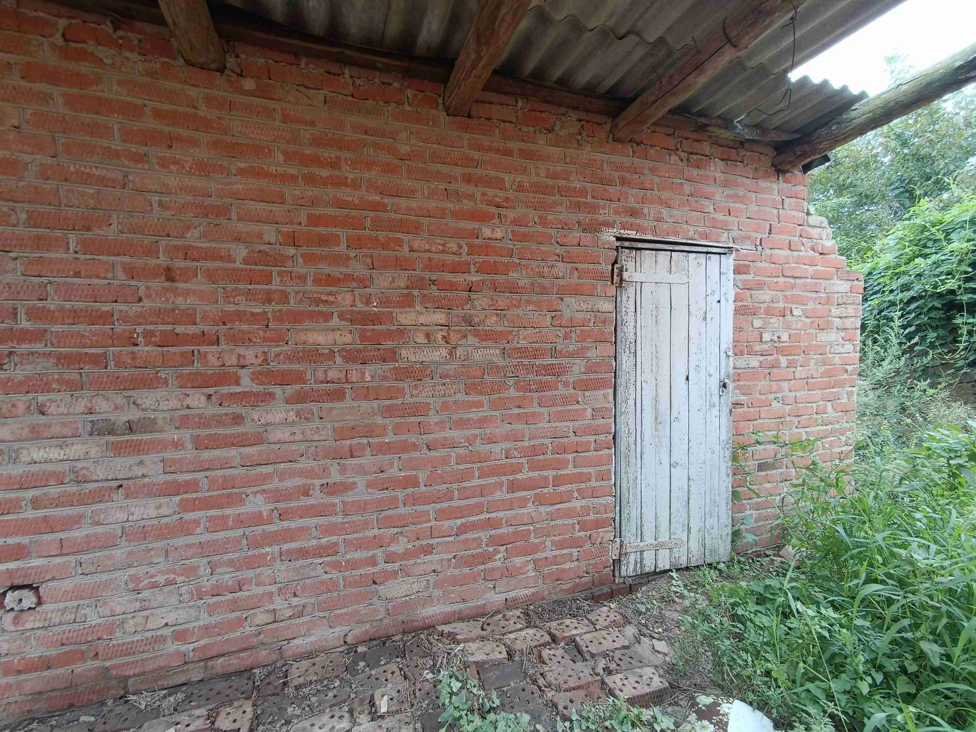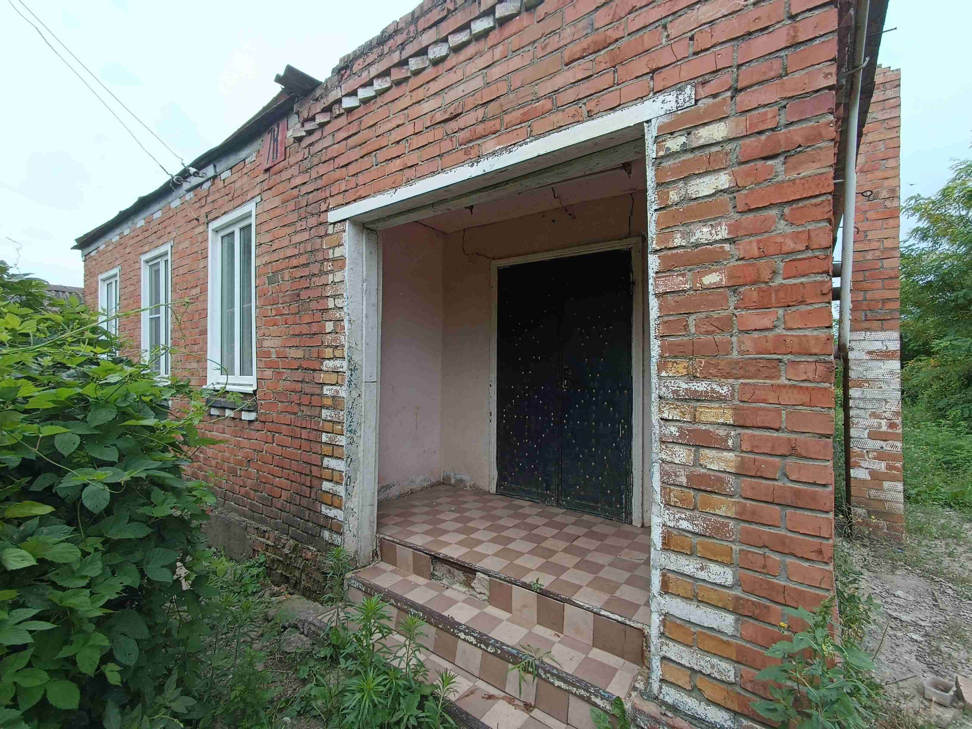 Входная дверь - деревянная. Перед входом в дом построен капитальный навес.