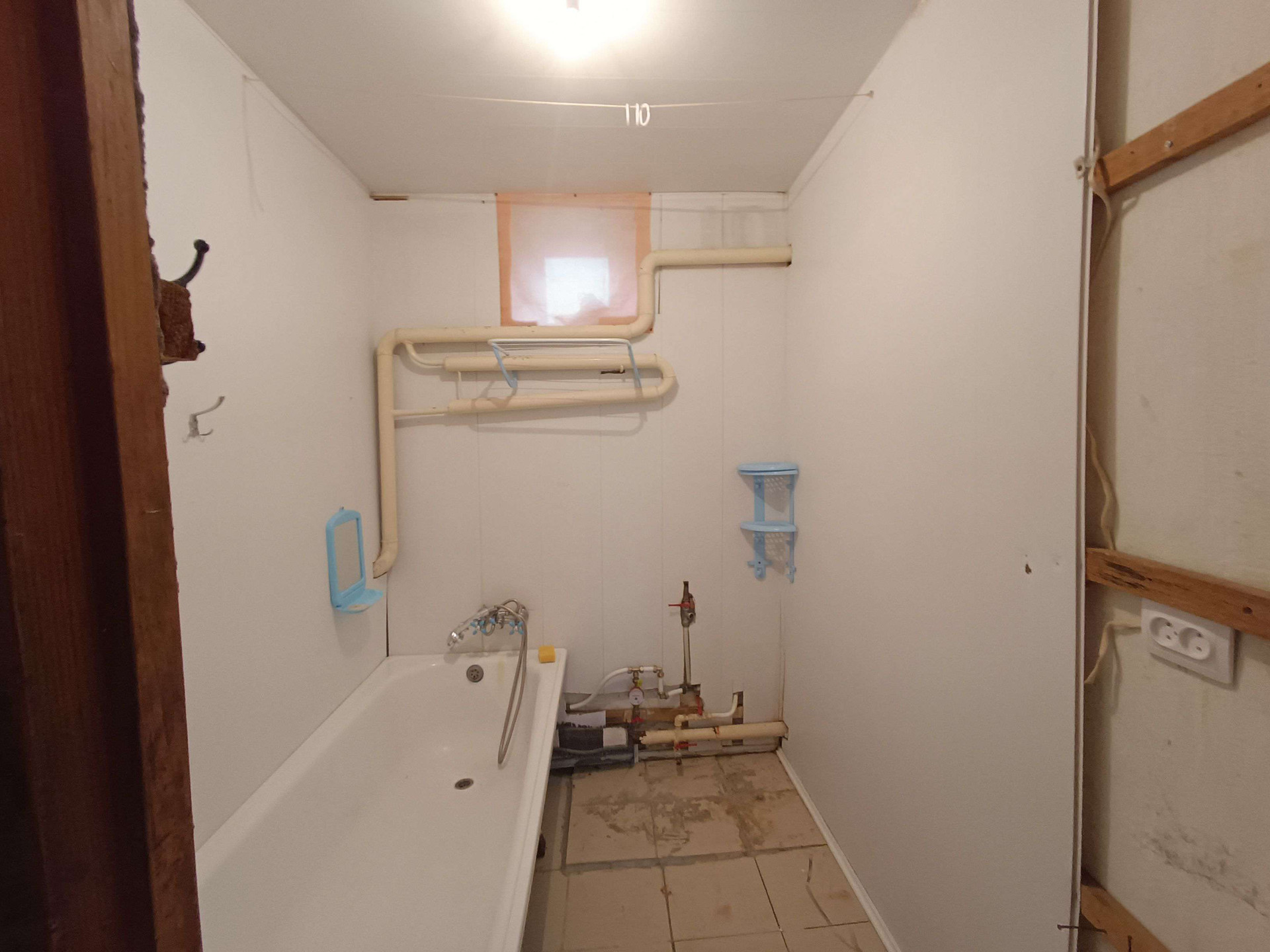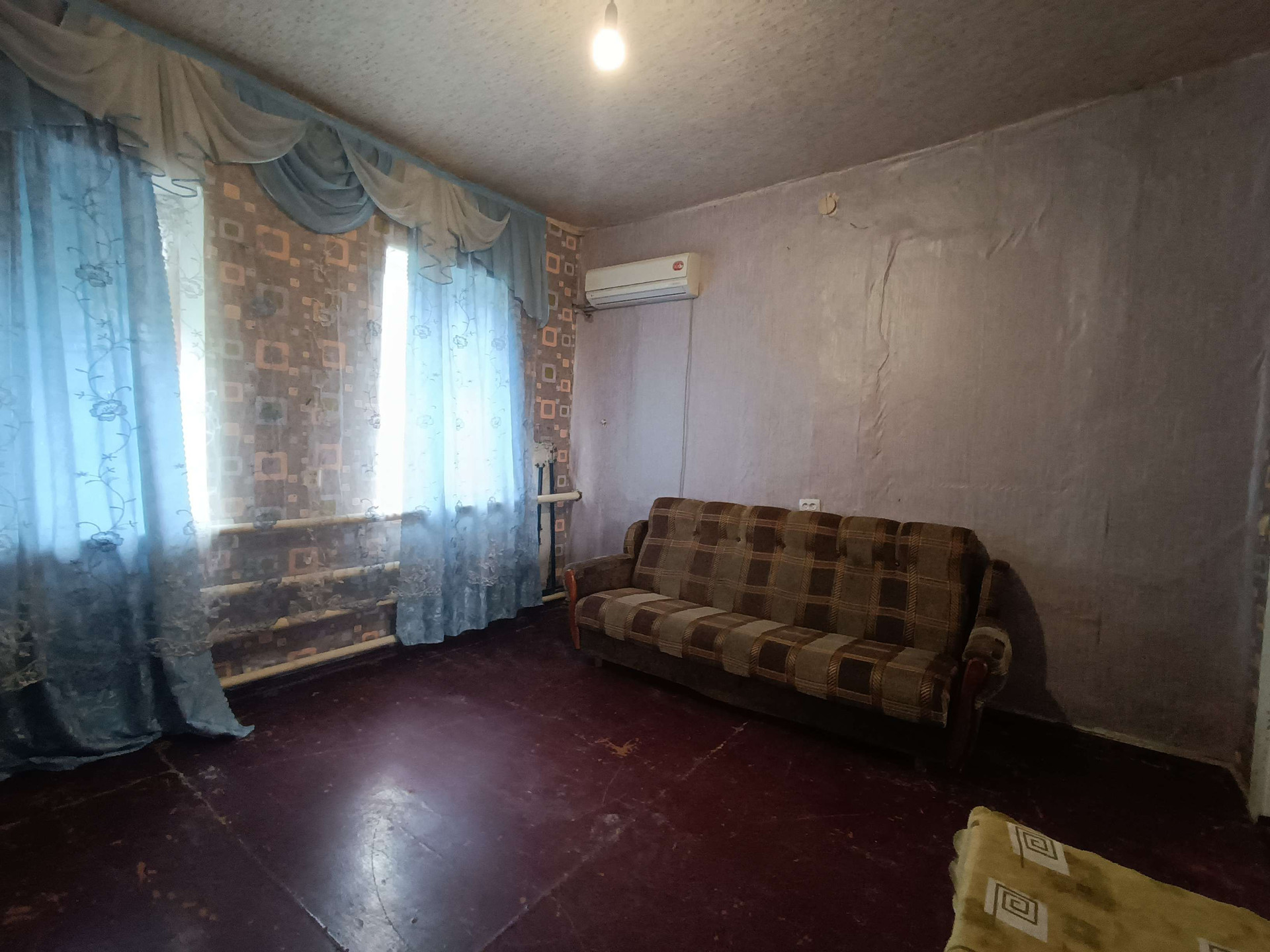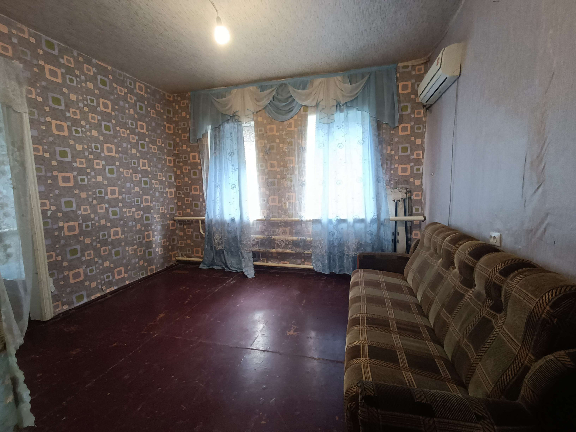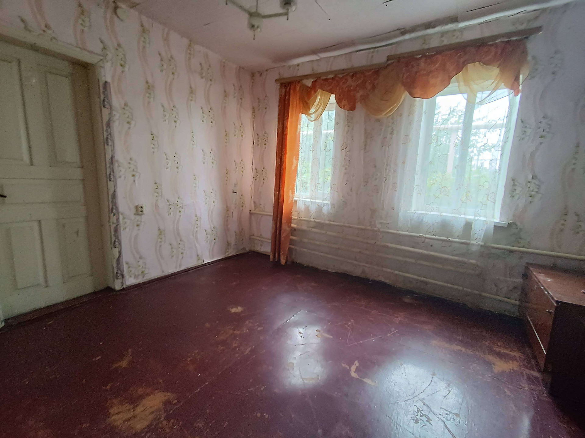 жения,кухни, с/у и коридоров. На стенах обои нейтральных цветов, потолки побелены, полы застелены листами ДВП. На кухне стены оклеены обоями, потолок побелен, полы застелены линолеумом. С/у раздельный, обшит пластиковыми