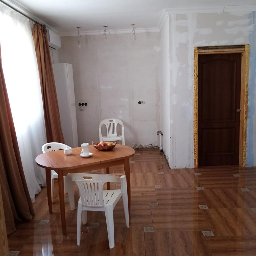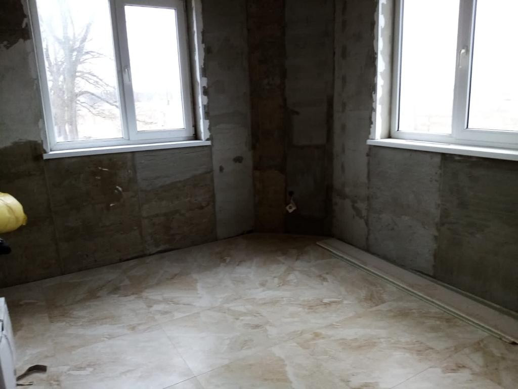 В доме почти закончен ремонт и есть большая часть мебели. Осталось где то доклеить обои, поставить розетки, выключатели, поставить мебель и готово. Везде проложен теплый пол.