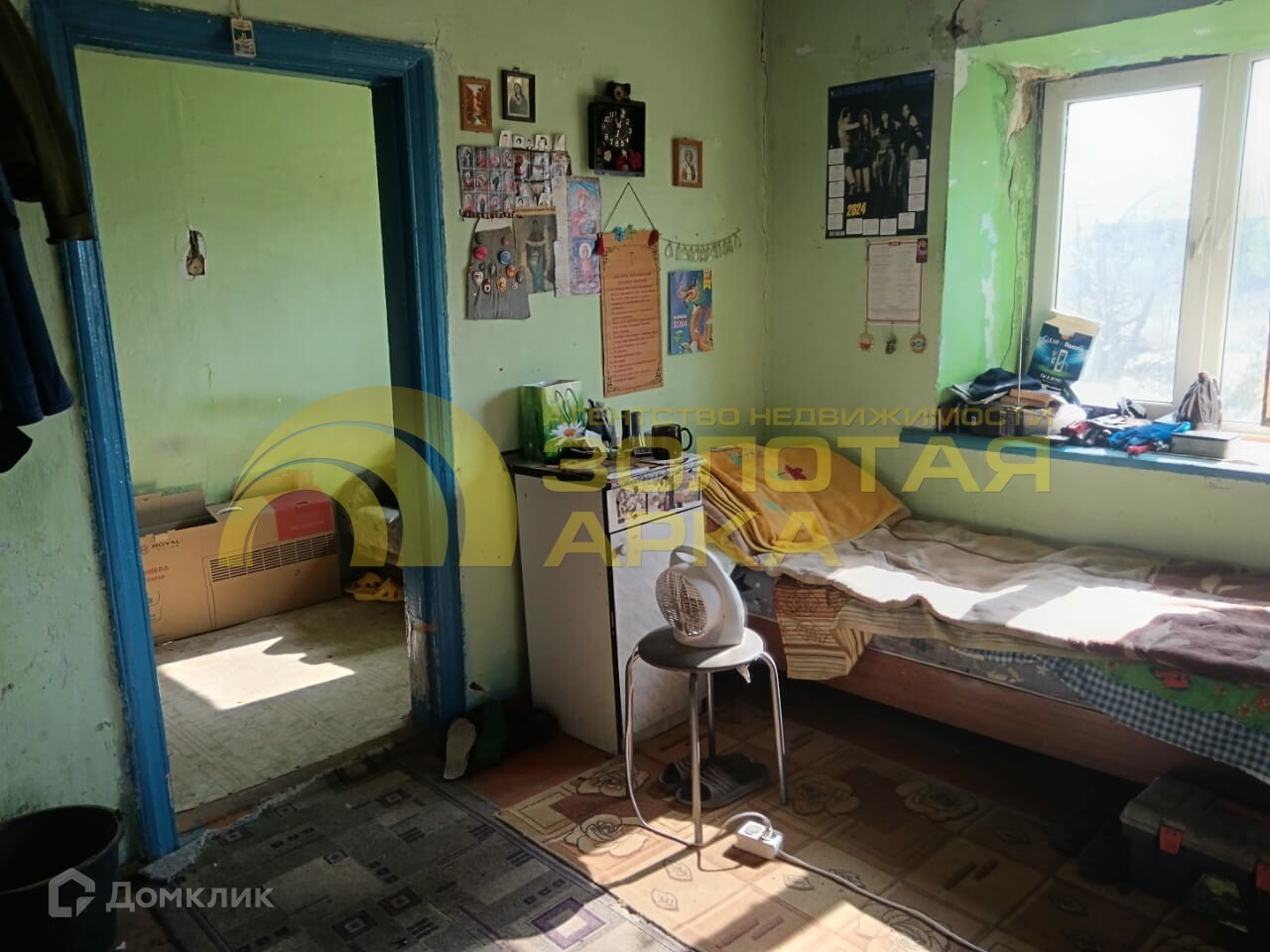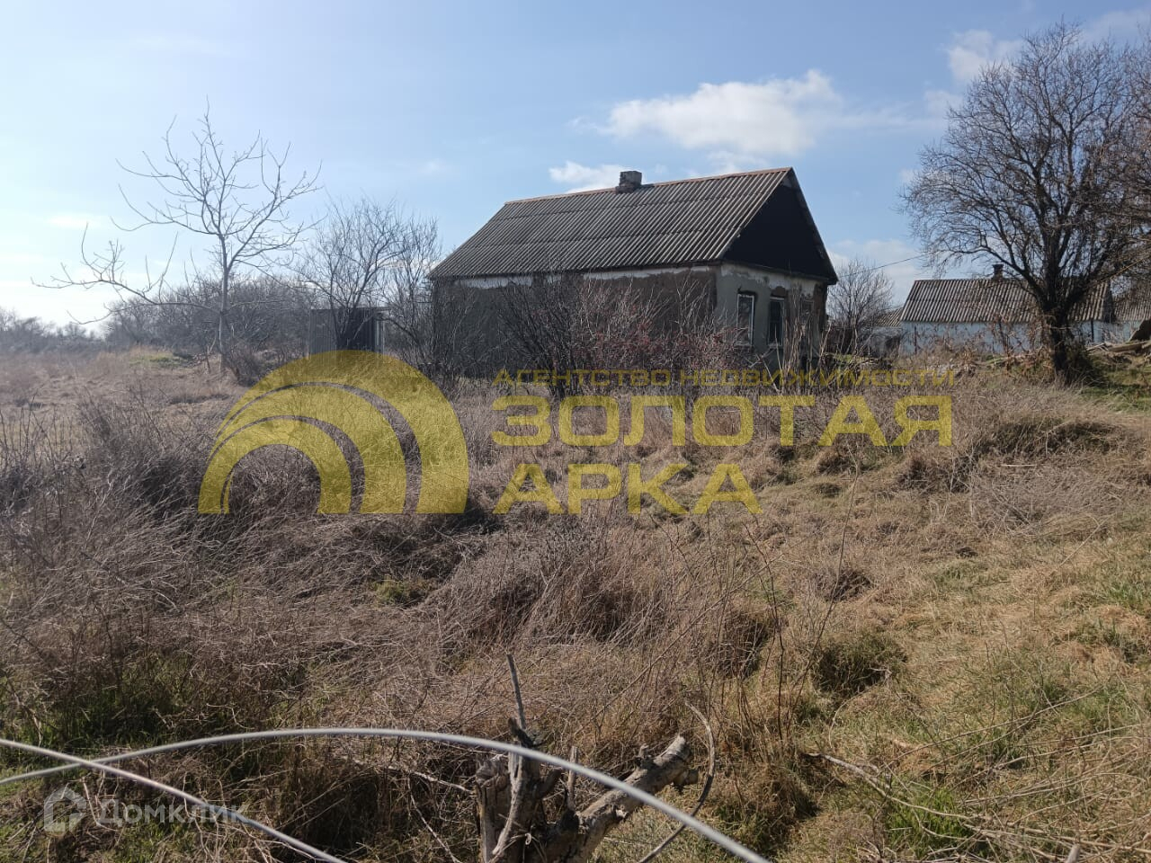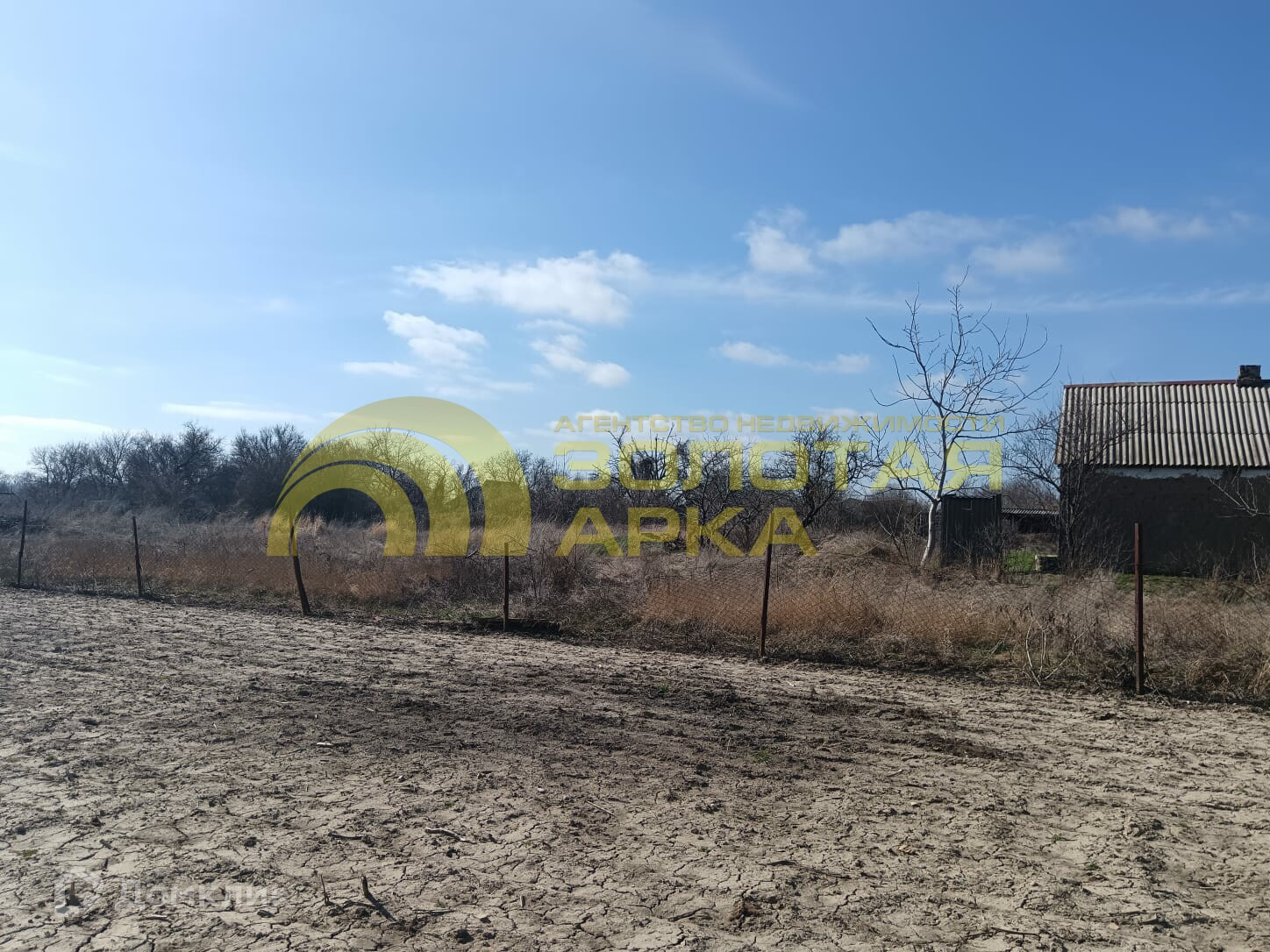 Стоит саманный дом для временного проживания.