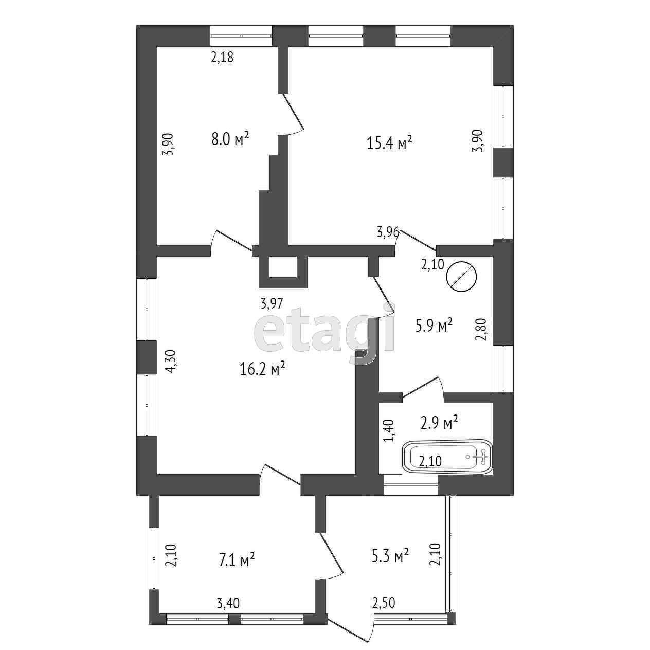 Общая площадь 48.4 м2