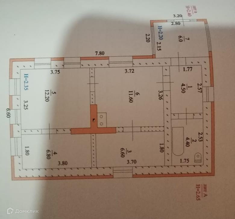 Высота потолков 2.35 м