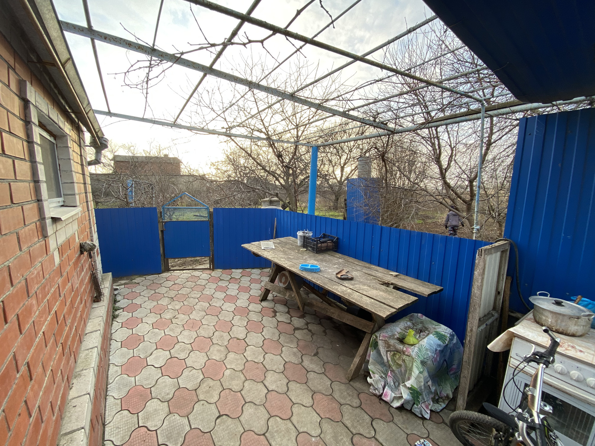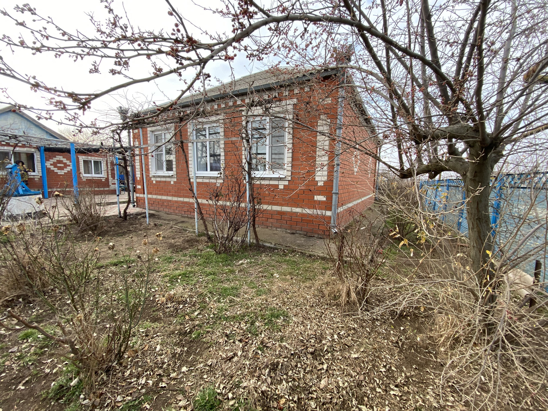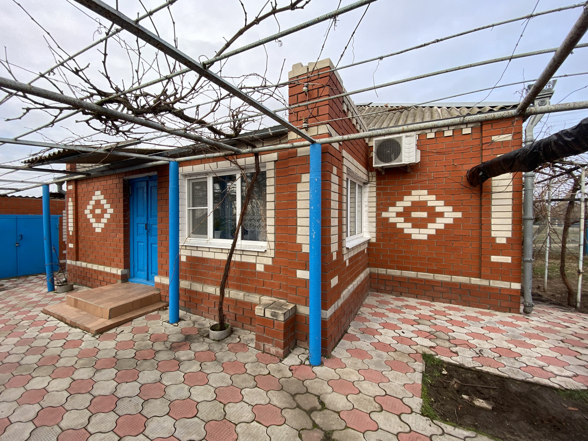 Материал стен керченский камень, облицовка кирпич. В доме 3 комнаты. Коммуникации центральные: водоснабжение, газ, электричество. Канализация септик. Есть летняя кухня, материал стен кирпич. В летней кухне 1 комната, кухня, сан. узел. Отопление в доме и в летней кухне. Во дворе гараж, погреб, летний душ, туалет. Земельный участок 26.5 соток. Угловой. Размеры 56 х 46 метра. На участке две газовые арки, для заезда техники. Много фруктовых деревьев, виноград.
