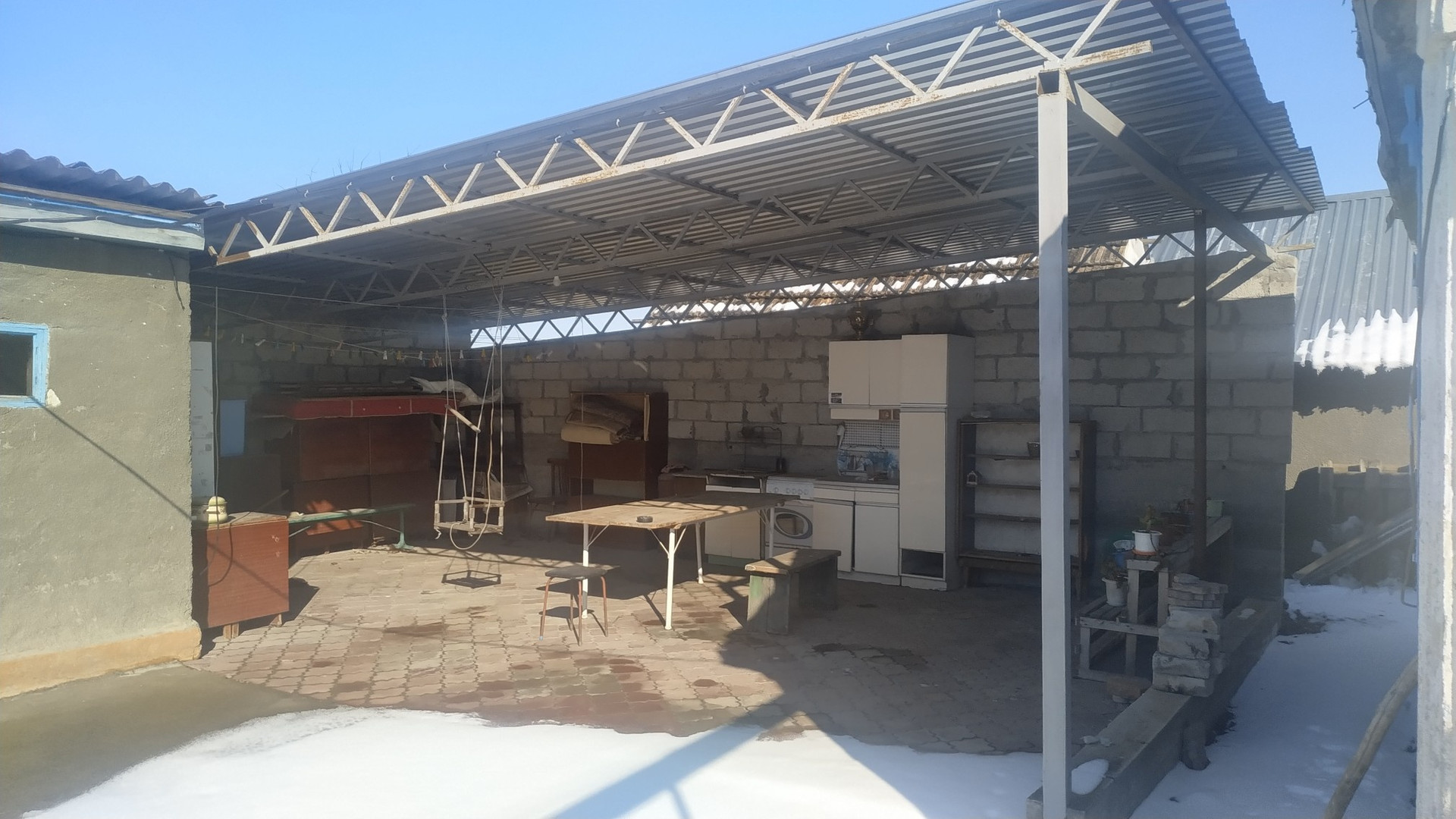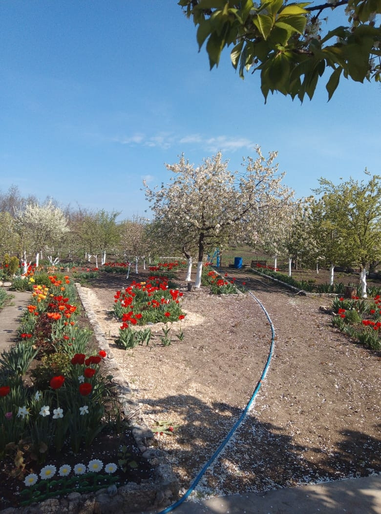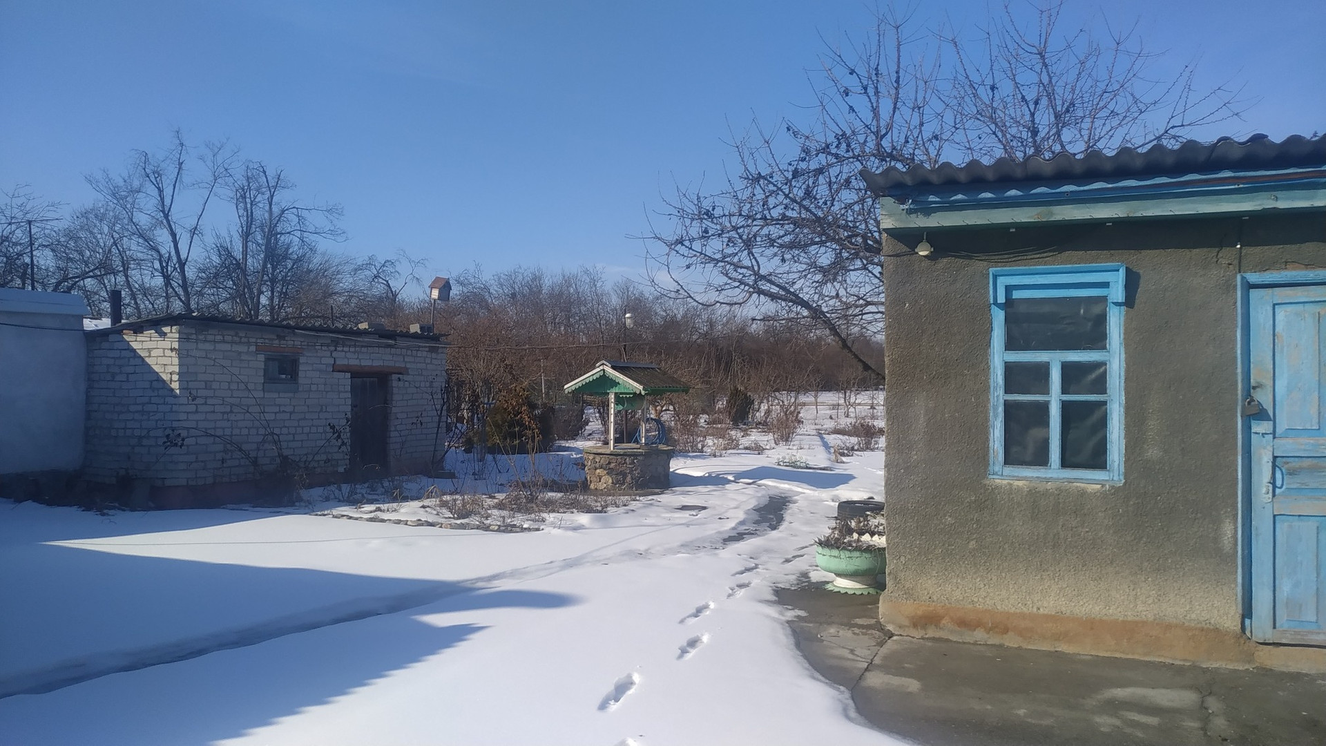 Продаётся дом с земельным участком (30 соток). Дом саманный состоит из 2 комнат и веранды. Времянка, состоящая из кухни, ванны и 2 комнат из кирпича. Широкий двор (свободно становятся 4 машины) . Во дворе  колодец с насосом, различные хозпостройки из кирпича, большой навес,  который при желании используется как "летняя" кухня. Ухоженные огород  и сад с плодовыми деревьями, малинником, виноградом.  На придомовой территории разбиты клумбы, которые будут радовать глаз с ранней весны до поздней осени. Кухня с мебелью. Улица асфальтированна. В 4 км от дома проходит федеральная трасса.  Показ по предварительной договорённости. В доме сейчас никто не живёт.