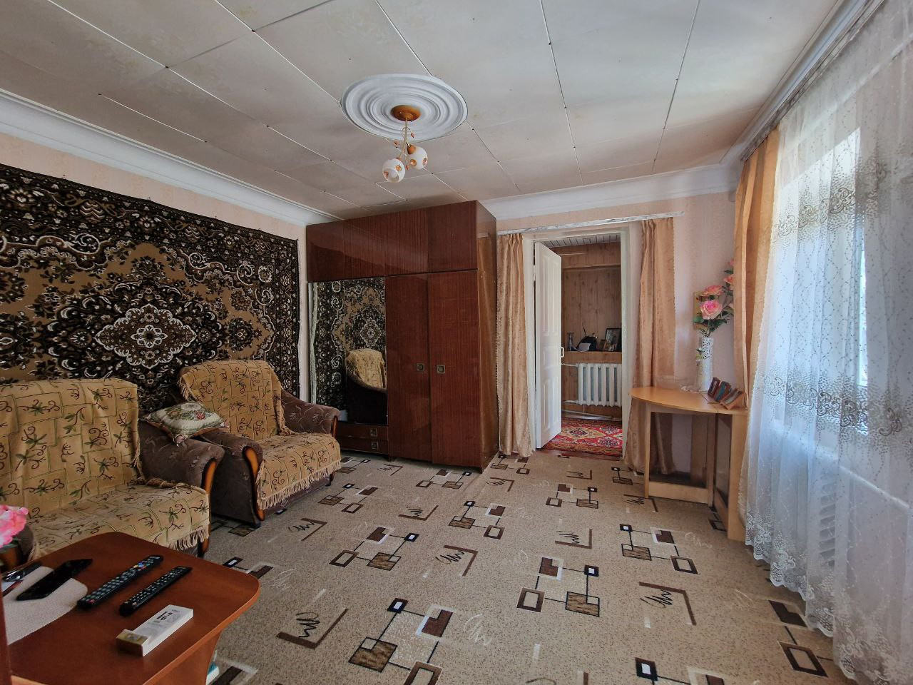 В станице Зольская продается жилой дом на земельном участке 12 соток. Дом саманный, оштукатурен, перекрыт металлопрофилем, пластиковые окна, входная дверь железная. Крыльцо из поликорбоната. В основном доме 2 комнаты, коридор, кухня и совмещенный санузел. Пол деревянный, застелен линолеум и ковролин, высокий потолок, поклеины обои и потолочная плитка. В коридоре стеновые мдф панели. Кухня и ванная комната отделаны кафелем. Установлена новая ванна и унитаз. Дом отапливается газовым котлом, горячая вода от колонки. Во дворе расположен второй жилой дом. В нем 2 комнаты и коридор. Требует косметический ремонт.