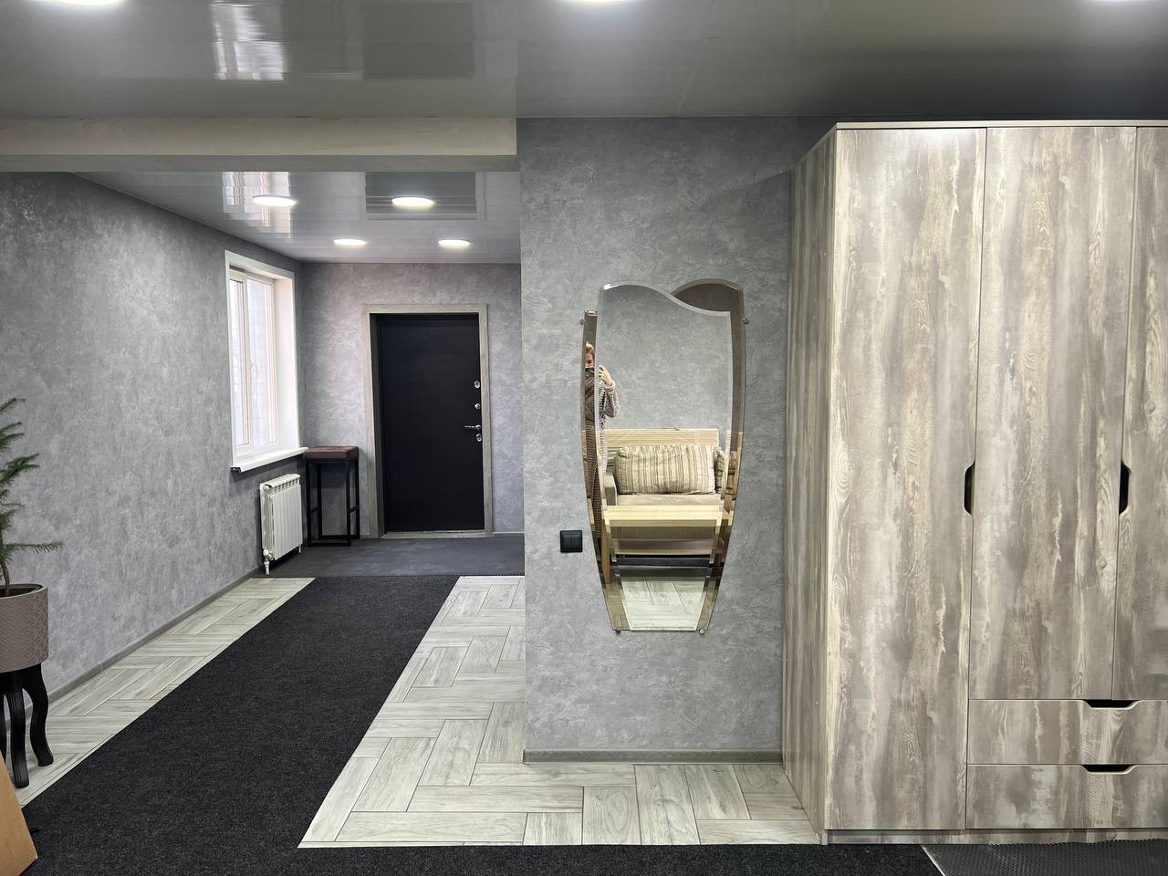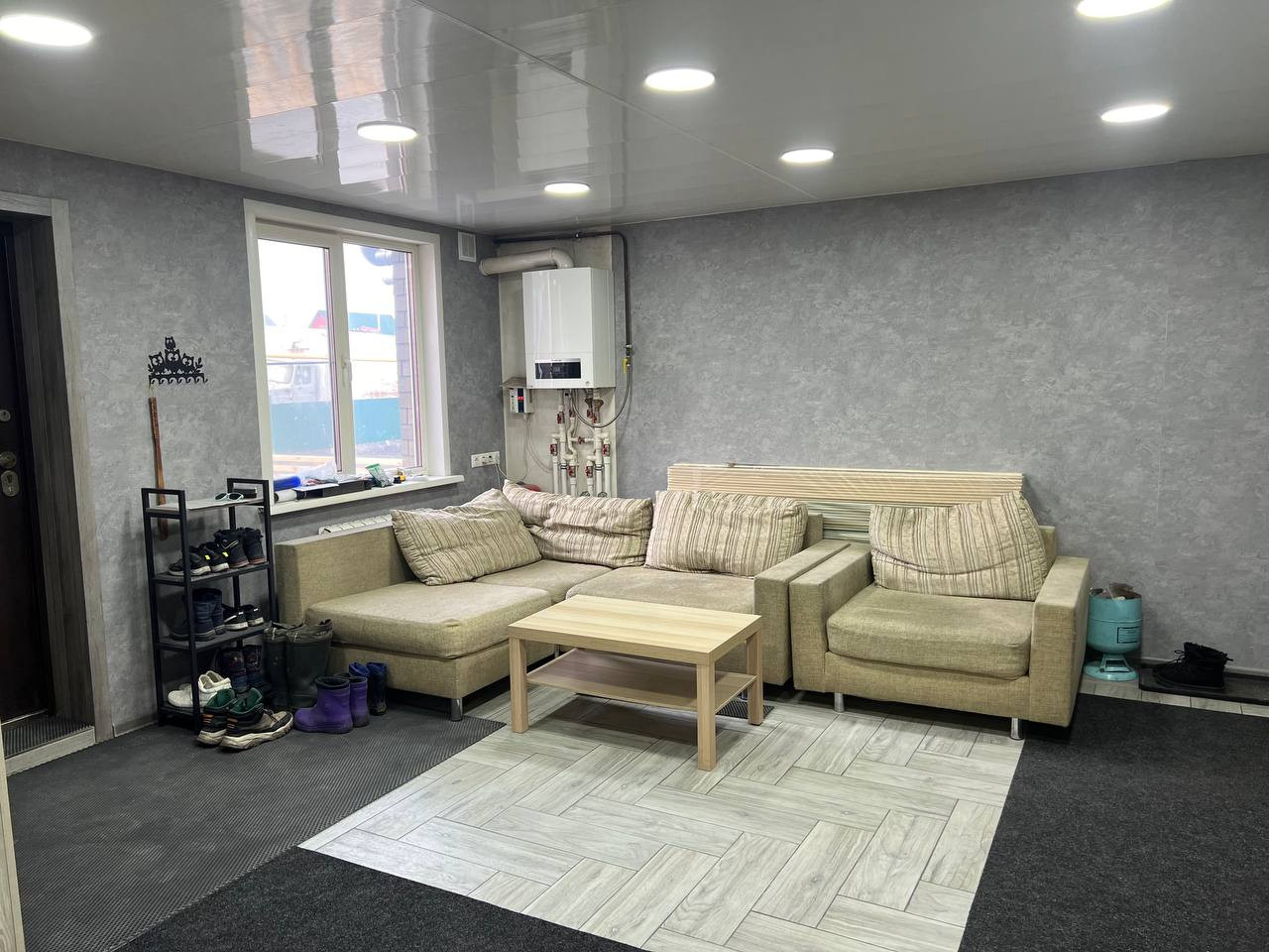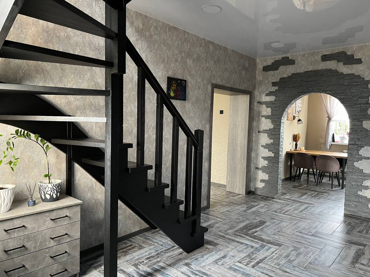 1 этаж - кухня, спальня, гардеробная комната. большой холл, совмещенный сан.узел, установлена душевая кабина.