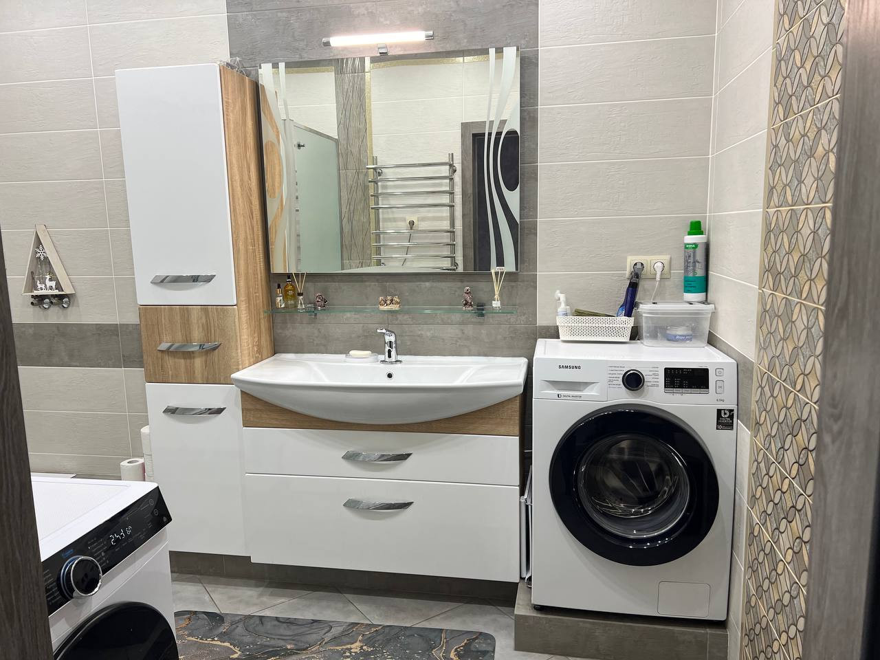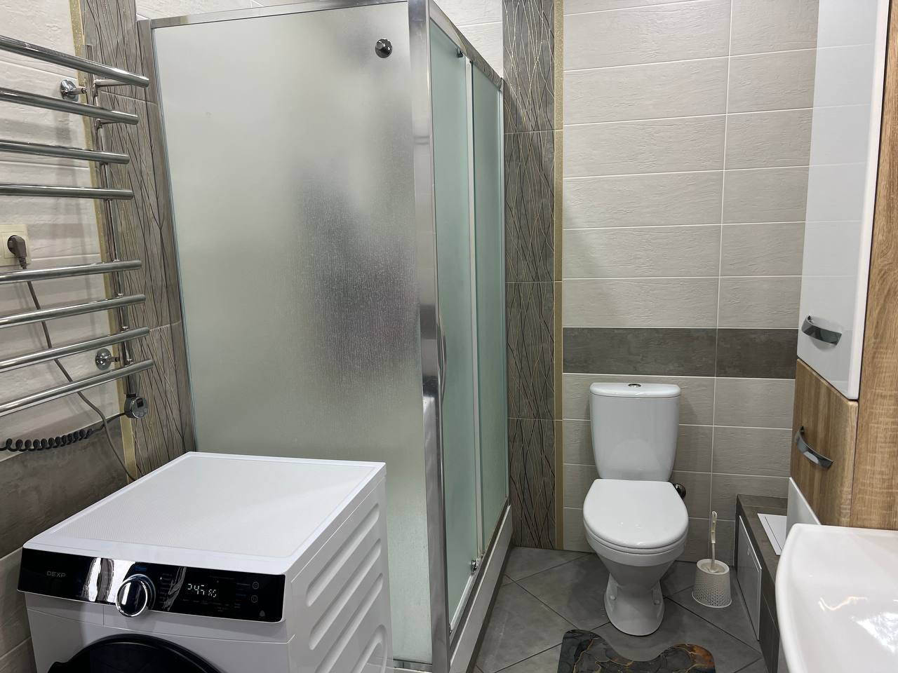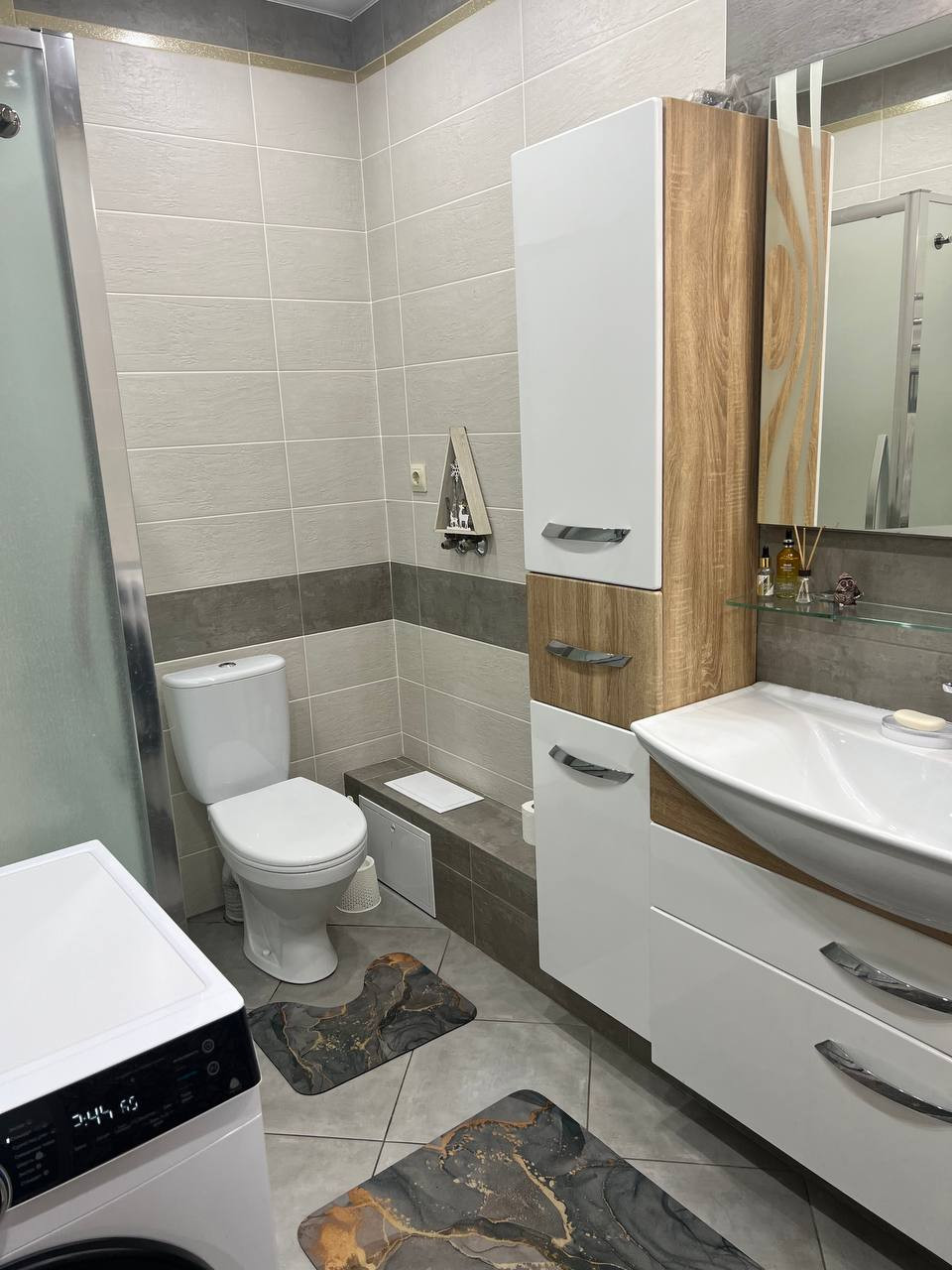 1 этаж - кухня, спальня, гардеробная комната. большой холл, совмещенный сан.узел, установлена душевая кабина.