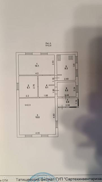 Общая площадь 56.8 м2