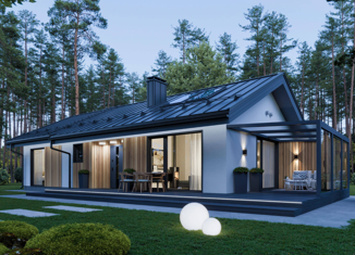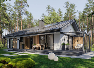 Дом SLM 2 - 1 этажный дом — 140м2. Отапливаемая площадь: 92м2, Площадь террасы: 48м2, Площадь дома (фундамента): 114м2. Современный 1 этажный дом с 3 спальнями, 140м2 (вкл. террасу из лиственницы 48м2), каркасный дом с утеплителем из SLM панелей. Толщина стен – 400мм (40см). Высота потолков 3м. Энергоэффективный (Затраты на отопление в 3 раза ниж... |