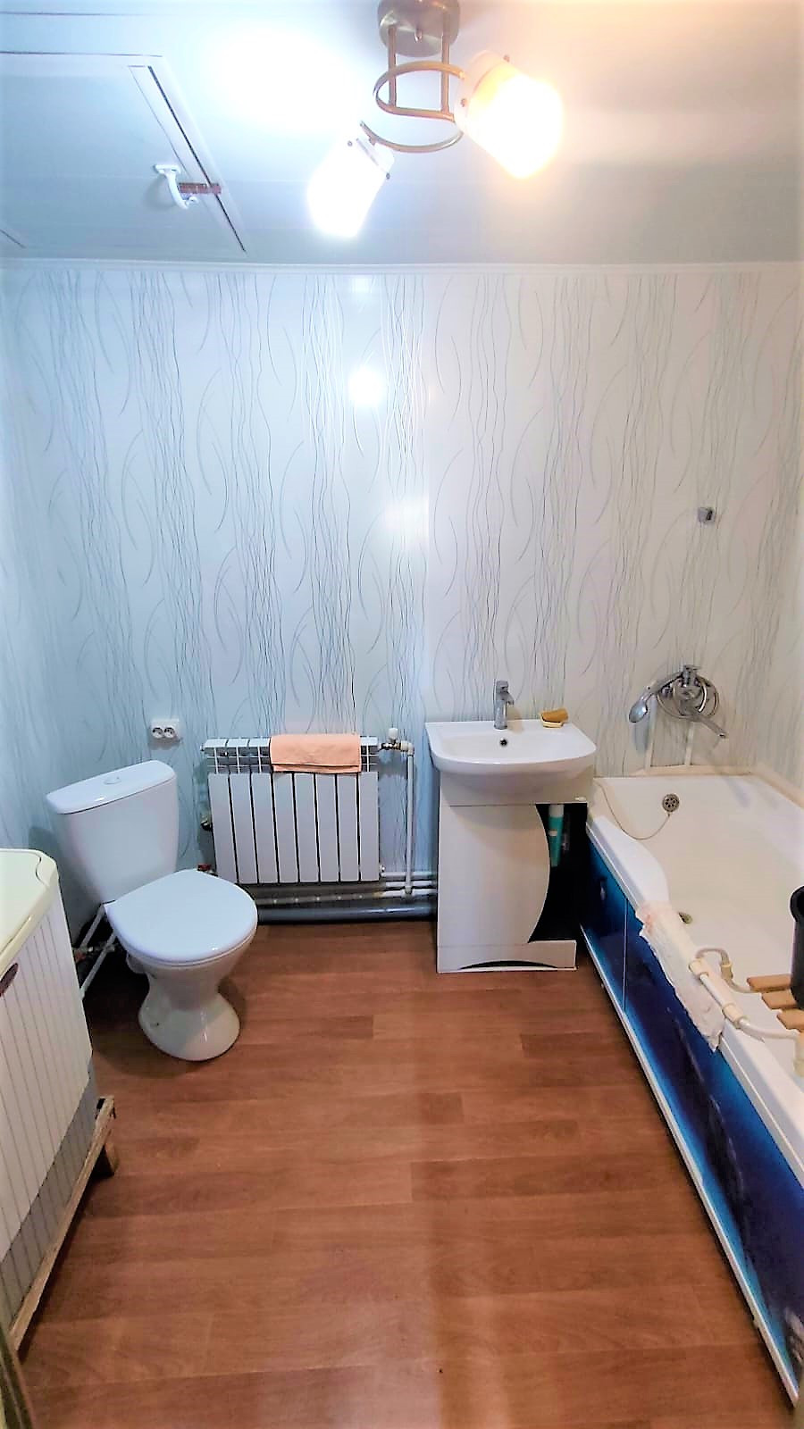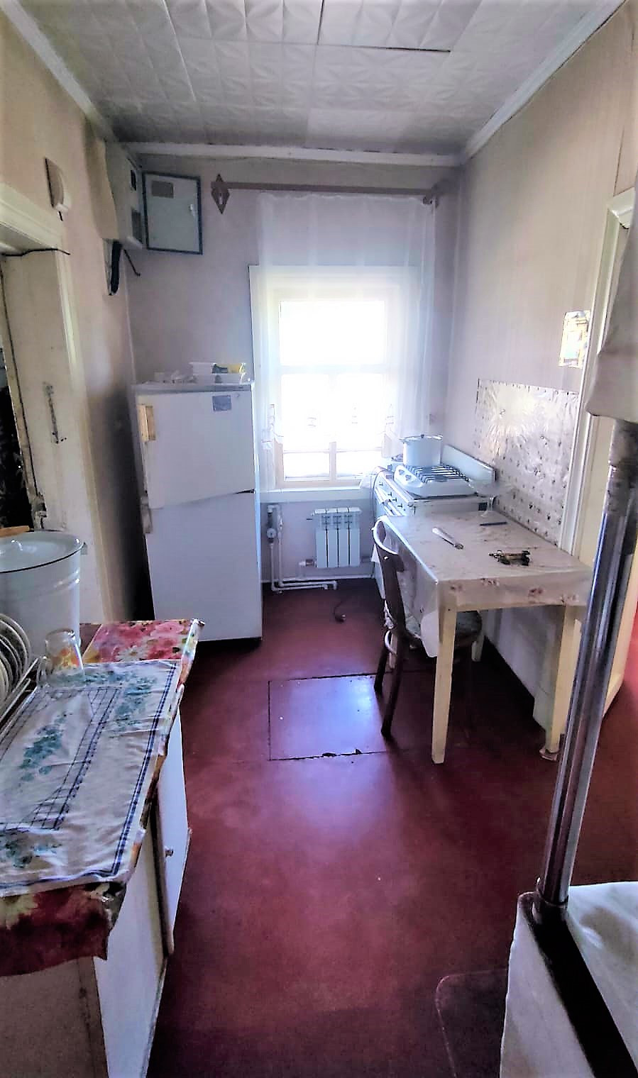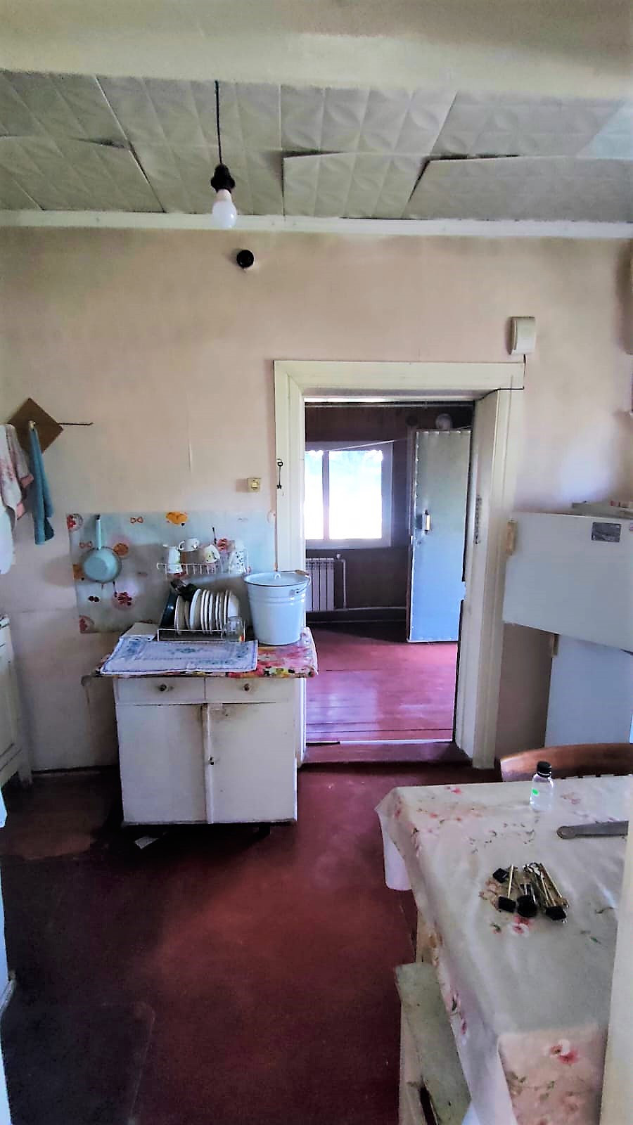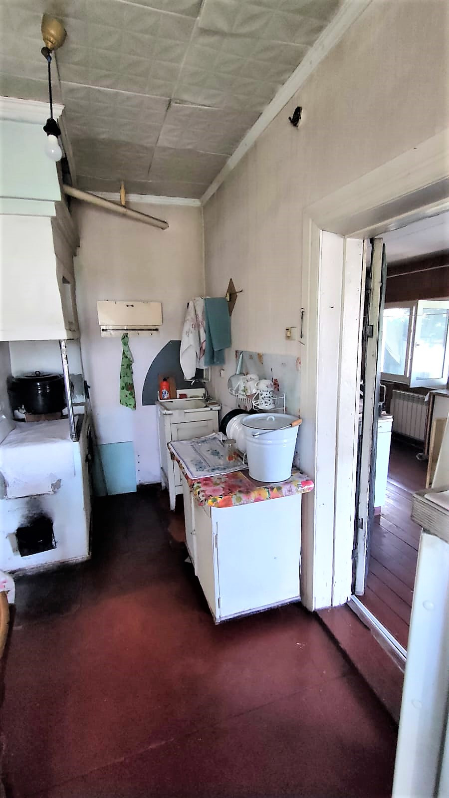 Рубленный дом на крепком фундаменте. При входе в дом попадаем на утепленную веранду, в которой установлены новые радиаторы и пластиковые окна, и газовый котел. Так же в доме есть просторный сан/узел, в котором установлена стиральная машина и ванна.