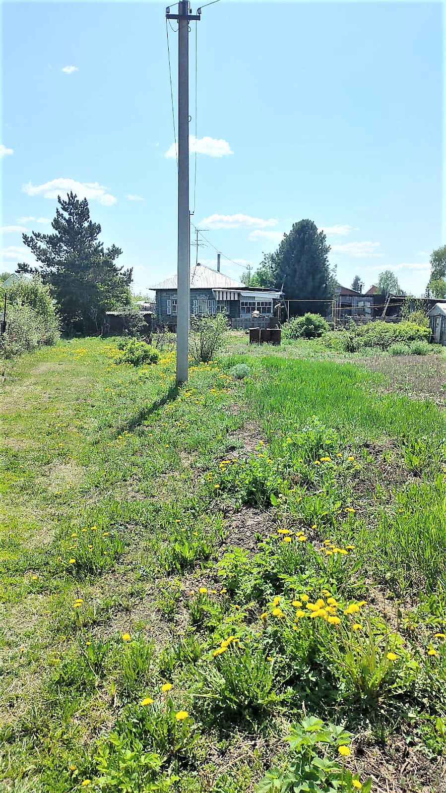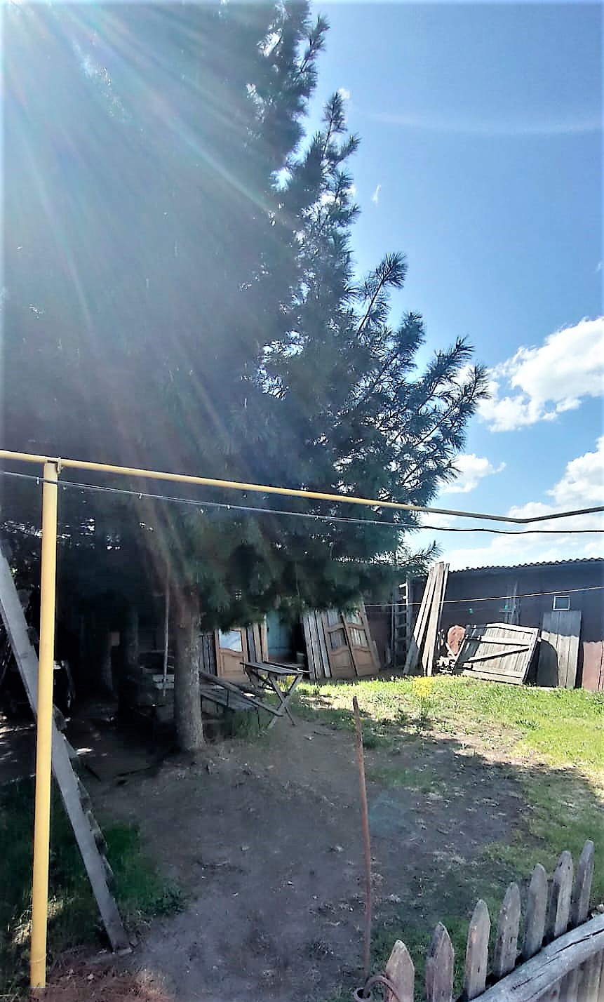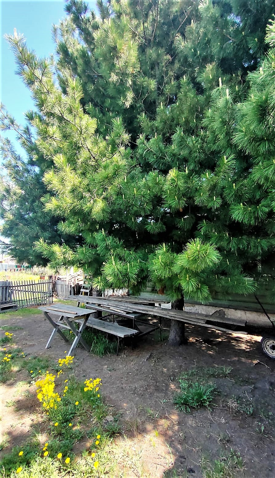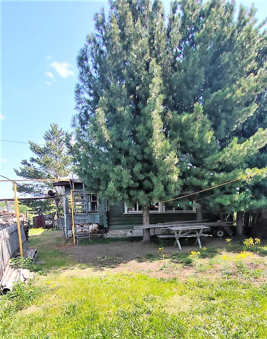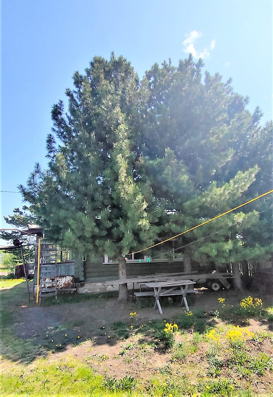 Просторный участок, растет огромный плодоносящий кедр.