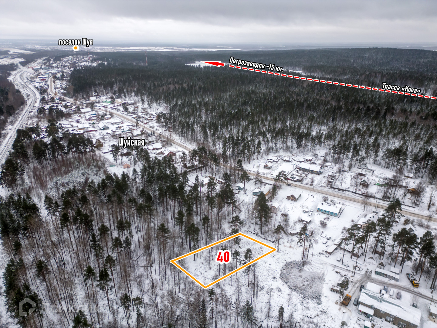 Кадастровый номер: 10:20:0010702:40 (координаты 61.957883°, 34.249567°)