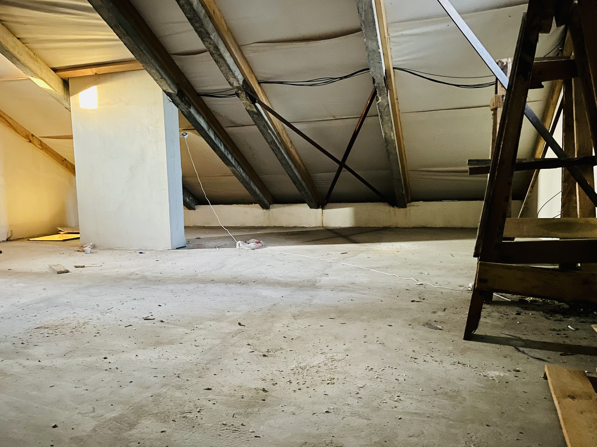 Помещения: гардеробная, холл, кухня. большая ванная, туалет, две спальни. Чердак, технический подвал через люк (не зачтено в общую площадь).