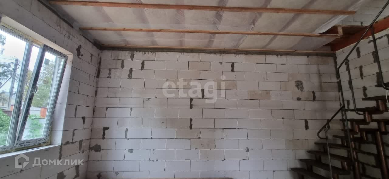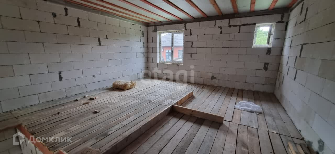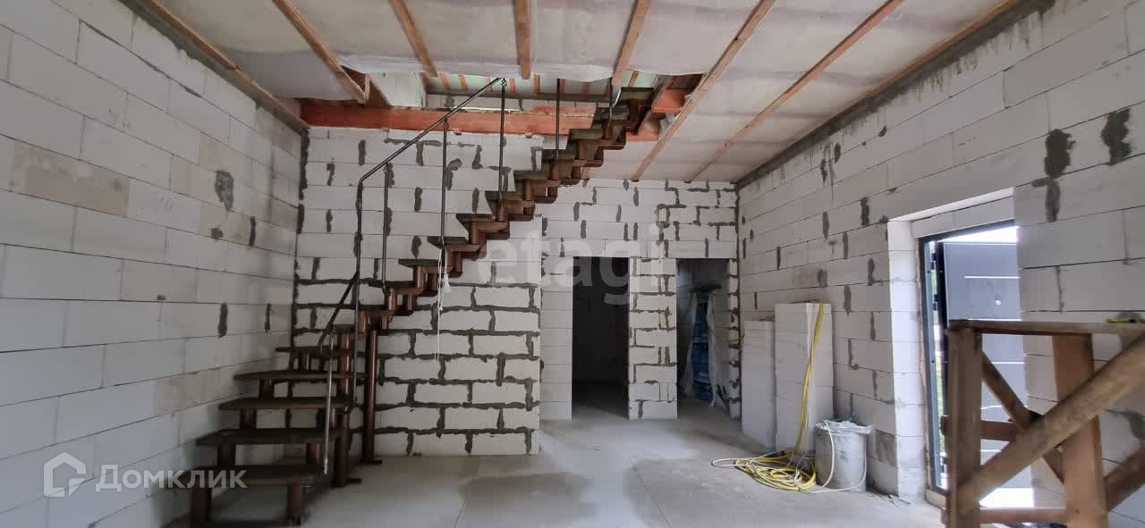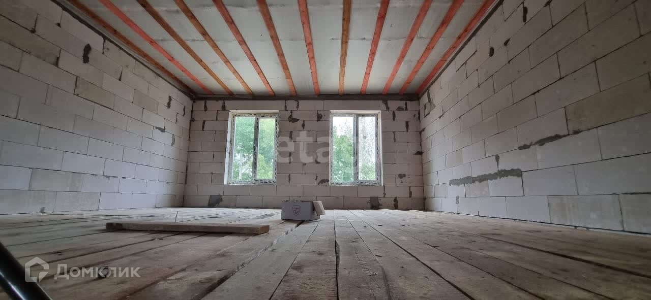 Двухэтажный дом с потолками более 3,5 метров. По проекту предусмотрены 4 изолированные комнаты, санузел, техническое помещение и большая кухня-гостиная. В настоящее время дом без отделки, установлены окна и двери, а также прочная лестница.