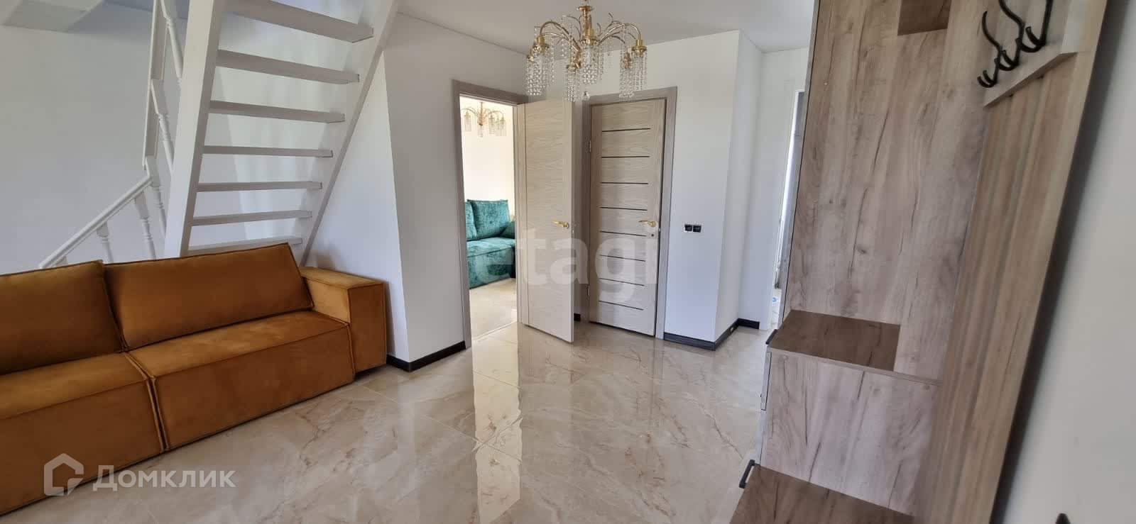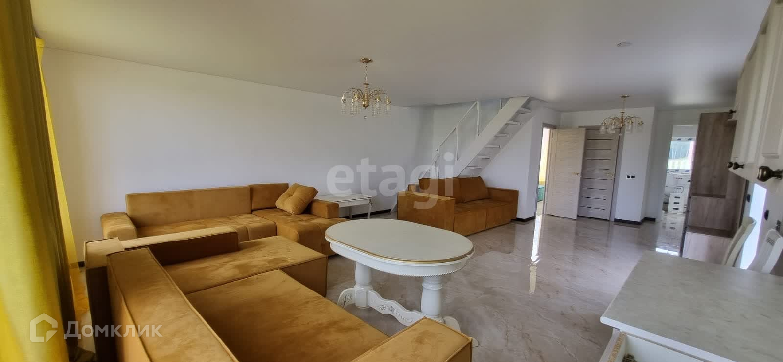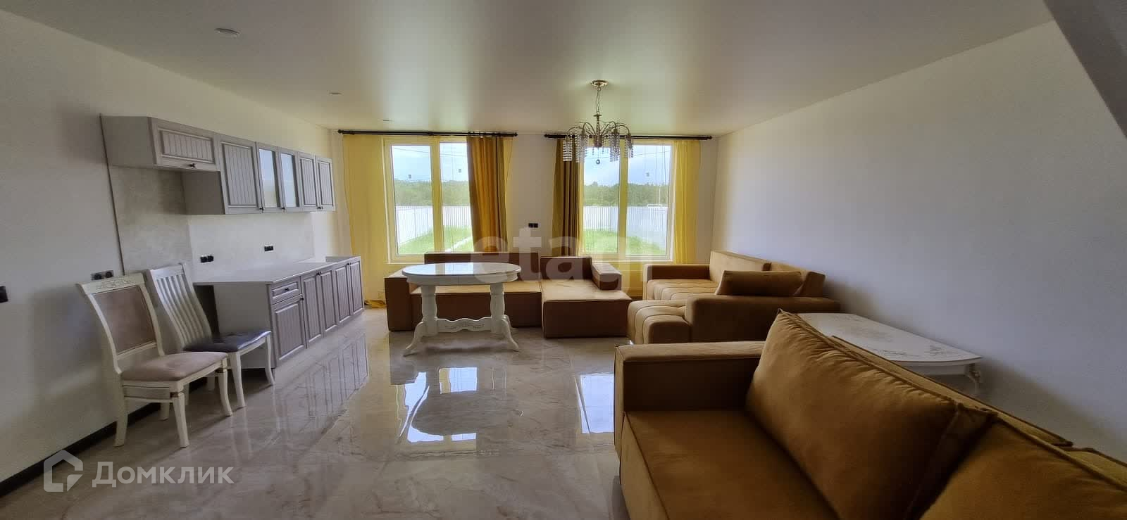 Двухэтажный дом с потолками более 3,5 метров. По проекту предусмотрены 4 изолированные комнаты, санузел, техническое помещение и большая кухня-гостиная. В настоящее время дом без отделки, установлены окна и двери, а также прочная лестница.