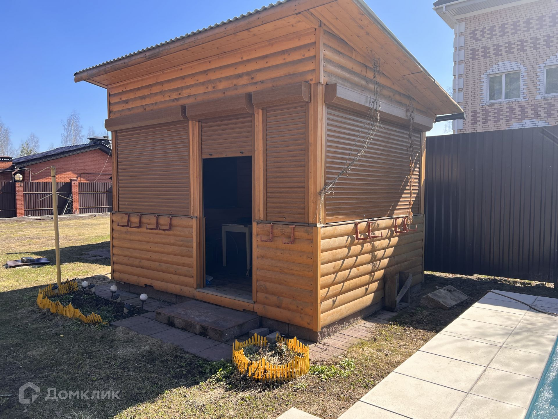 • беседка (12 кв.м) с рольставнями, подключено электричество.