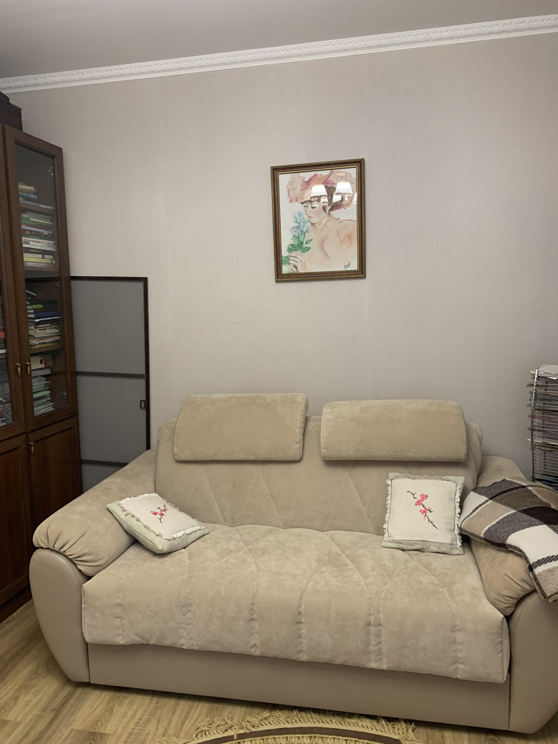 2 этаж: 3 спальни (15,3+19+14,5м2), холл- 14м2, лоджия 13м2 с видом на речку, санузел (туалет и ванна). Полы-ламинат.