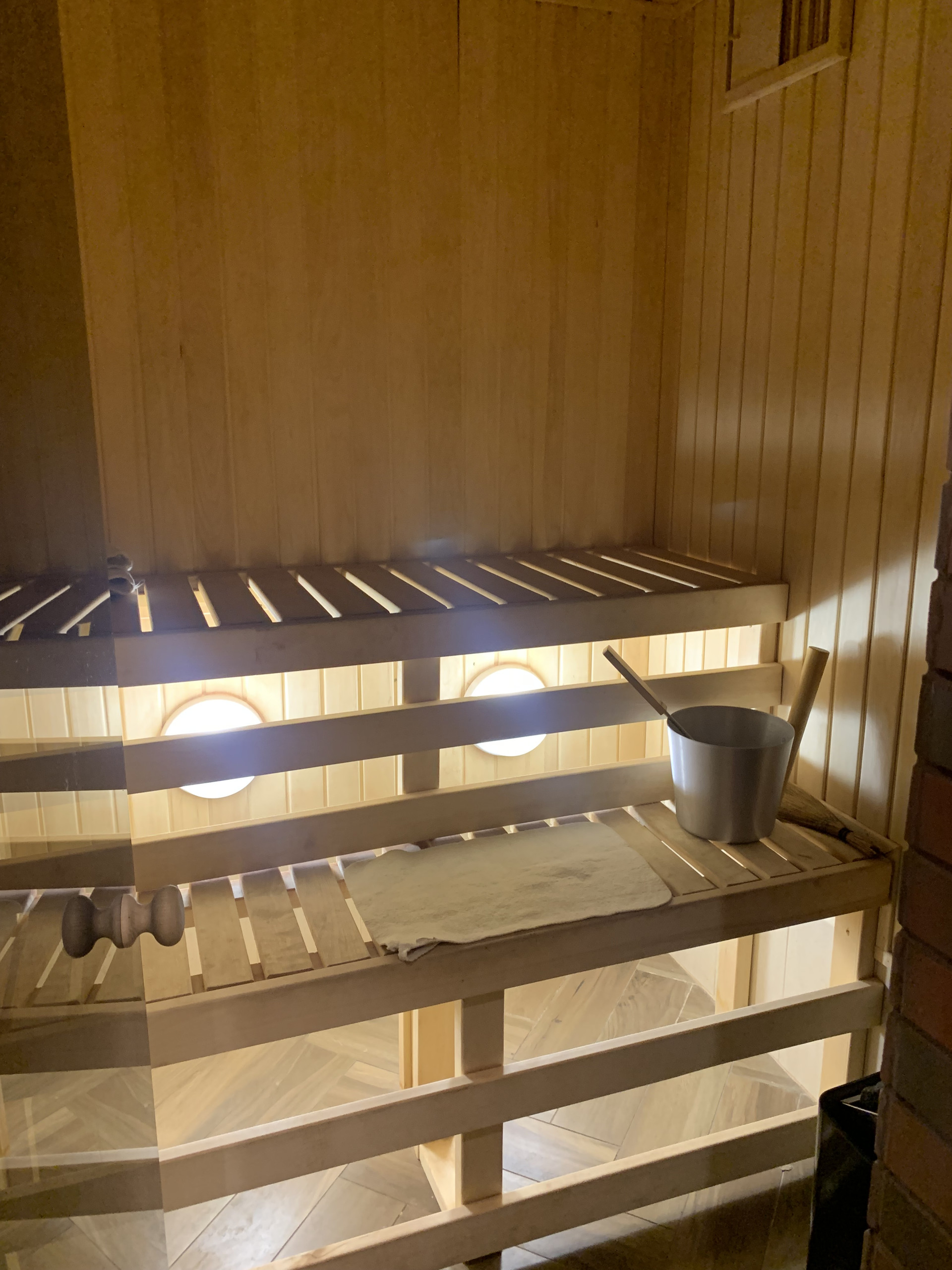1 этаж: кухня- 15,3м2, со встроенной мебелью и бытовой техникой, гостиная 33,5м2 с выходом не террасу, холл- 14м2, прихожая 6м2, сауна, санузел ( туалет и душевая ), котельная. Полы: кафельная плитка(с подогревом).