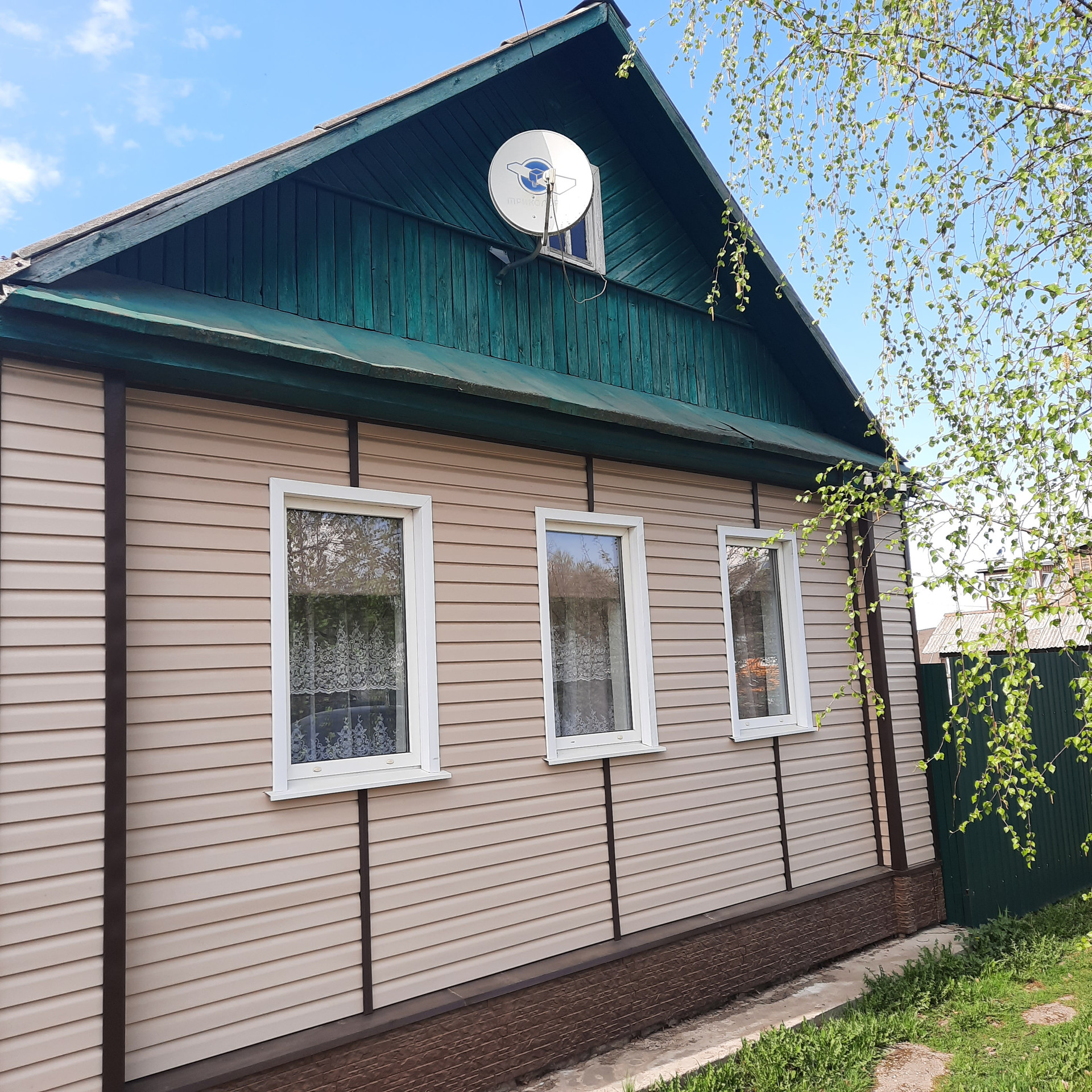 Продам дом, бревно, обшит сайдингом, окна стеклопакеты, площ.51 м2, отопление газовое, водоснабжение централизованное, горячая вода от газовой колонки, септик. Три комнаты + кухня-столовая, сан.узел совмещен, душевая кабина. Хороший косметический ремонт.  Участок 12 соток, обработан, плодово-ягодные посадки. На участке теплица, хоз.постройки, гараж.