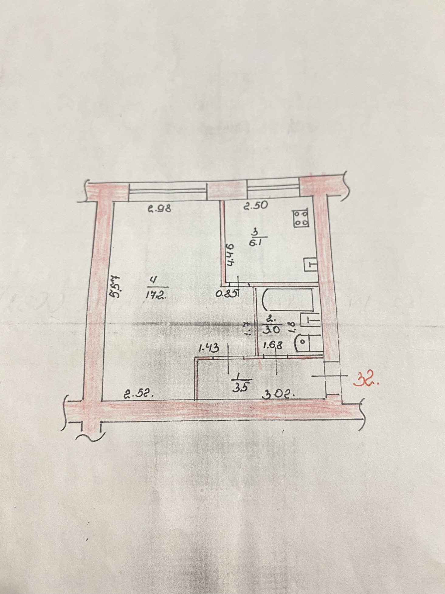 Общая: 29,8 м/ кухня 6,1 м/ комната 17,2м.