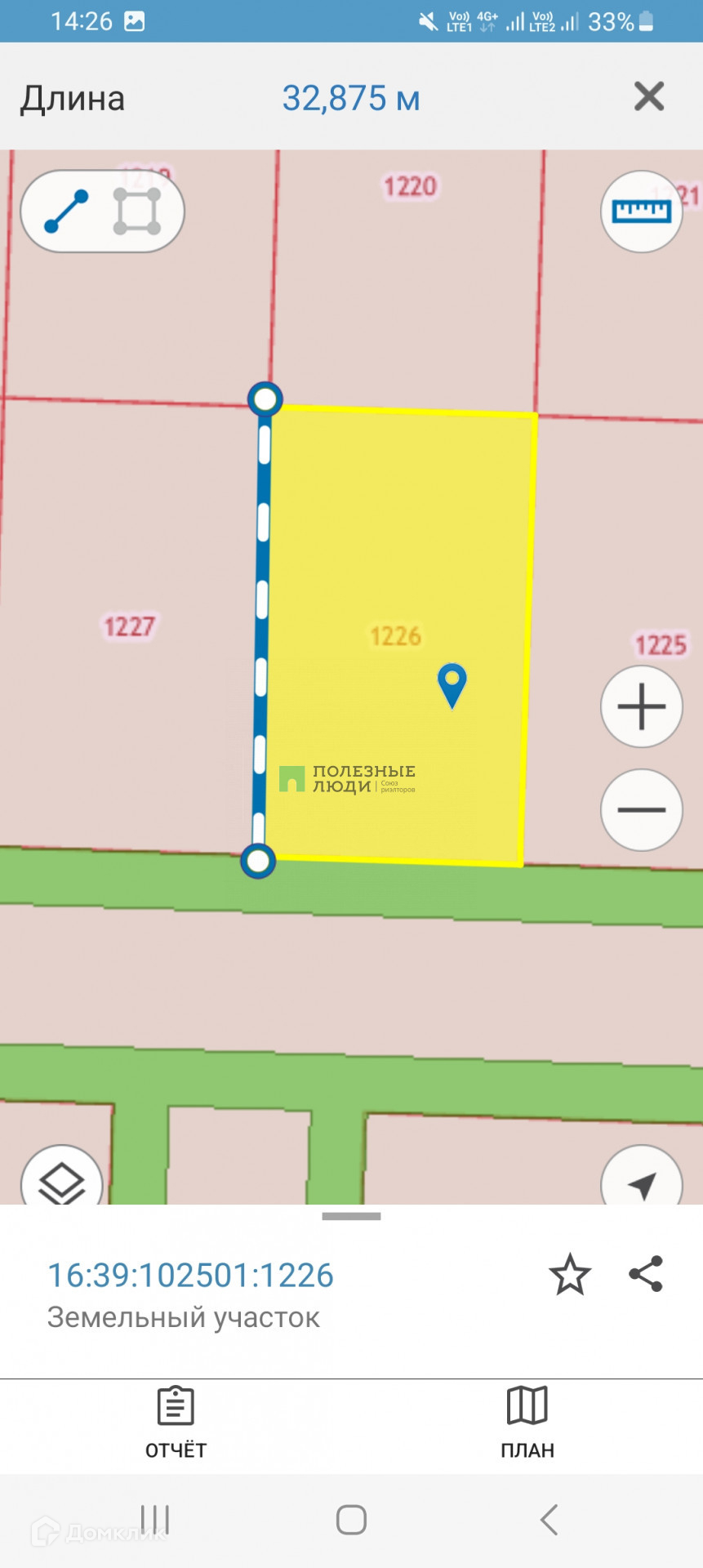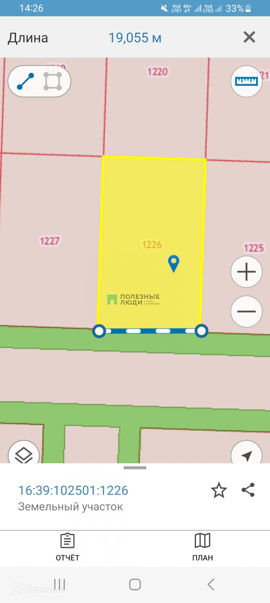 Размер 19 на 32 м. Электрические столбы по улице. Перспективное место.