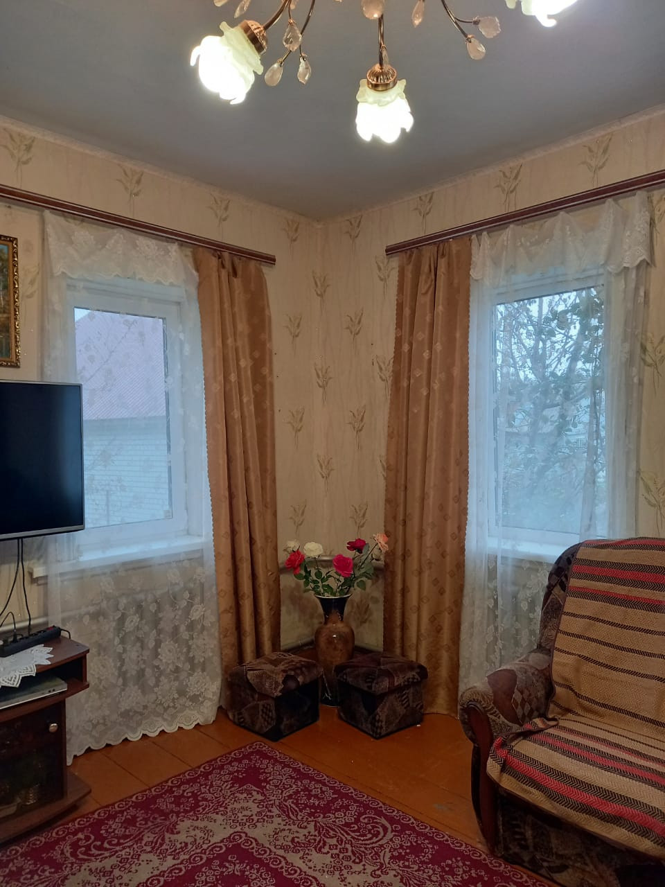 Хороший просторный светлый дом , расположен в зеленой зоне, рядом автовокзал, школа, магазин в шаговой доступности.Есть большая территория вокруг дома, гараж, много цветов и благоустроенных площадок, качели. место для  отдыха .Пруд с рыбками и кувшинками,садовые деревья и кустарники, малина. смородина, черешни.В доме высокие потолки, душ, ванна и большая кухня.Летом в доме прохладно от жары, зимой тепло и уютно, в доме много места и комнаты изолированы, для большой дружной семьи.Развитая инфраструктура:детский сад и автовокзал 10 минут, до школы№3 пешком 15минут ходьбы, магазин 5 минут возле дома , центральное освещение улицы вечером , словом удобно , тихо и спокойно, соседи замечательные и дружные
