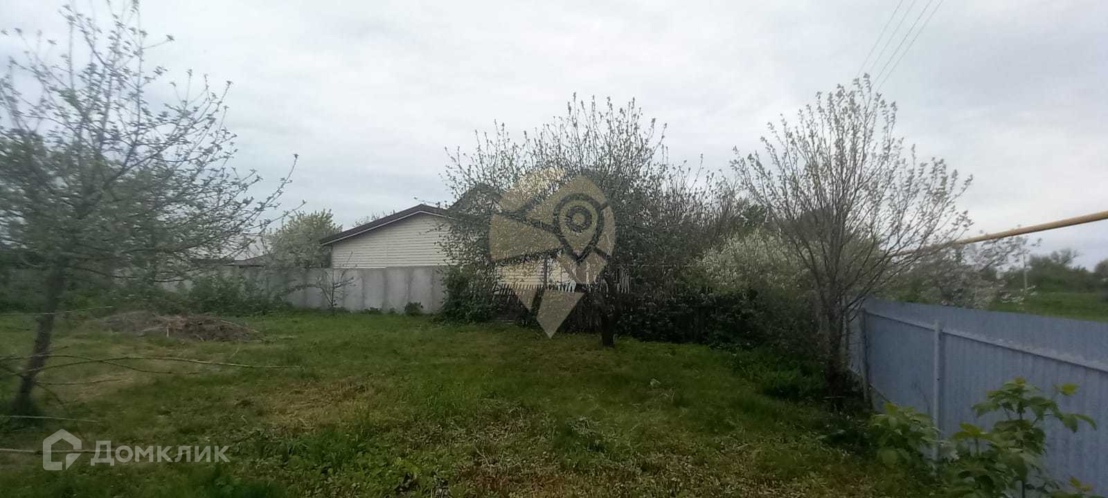 На участке фруктовые деревья и кустарники.