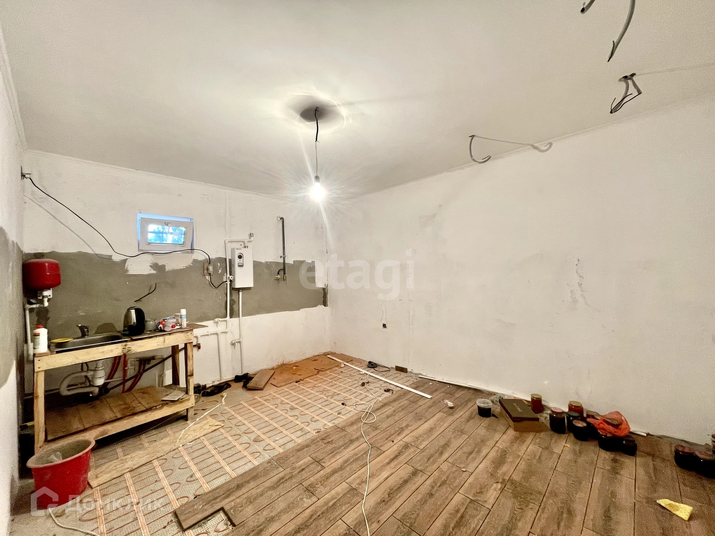Продается 2х этажный дом 92 кв. м на 2 сотках земли, введён в эксплуатацию в 2022г. Дом построен из керамзитобетонных блоков, толщина стен 30 см монолит. Газ в дом заведён осталось сделать пуск (документы к пуску готовы; котла нет, можно ставить по своему усмотрению навесной или напольный). Вода централизованная, в дом заведена. Канализация - септик. В доме на 1 этаже тёплый пол: кухня, санузел — электрический, а зал и коридор - от системы отопления (трубы с контуром теплоизоляции , всё это под стяжкой пола); имеется вывод под радиаторы. На кухне начали класть плитку керамогранит, плитка есть на весь 1 этаж остаётся в подарок. Проводка новая медная, разводка сделана. Второй этаж обшит: пол - доска+ОСБ плита , стены - гипсокартон , утеплёны потолок, стены, перекрытие между 1 и 2 этажами - стекловата, толщиной 15см. Дом полностью под ваш ремонт. С документами всё в порядке, готовы к продаже! Собственник один! На участке стоит старый дом под снос (можно разобрать на материал)! Рядом магазин Светофор, остановка общественного транспорта 5 мин пешком!Работая с компанией «Этажи» Вы получаете : полное сопровождение сделки, годовой гарантийный сертификат, полный анализ рынка недвижимости, а так же подарочные сертификаты. Звоните скорее, пока дом вашей мечты не купил кто-то другой !