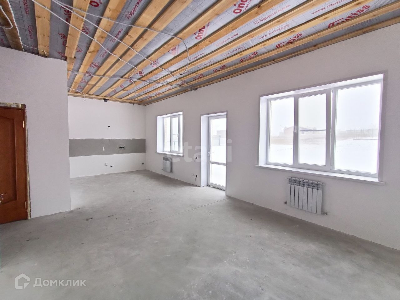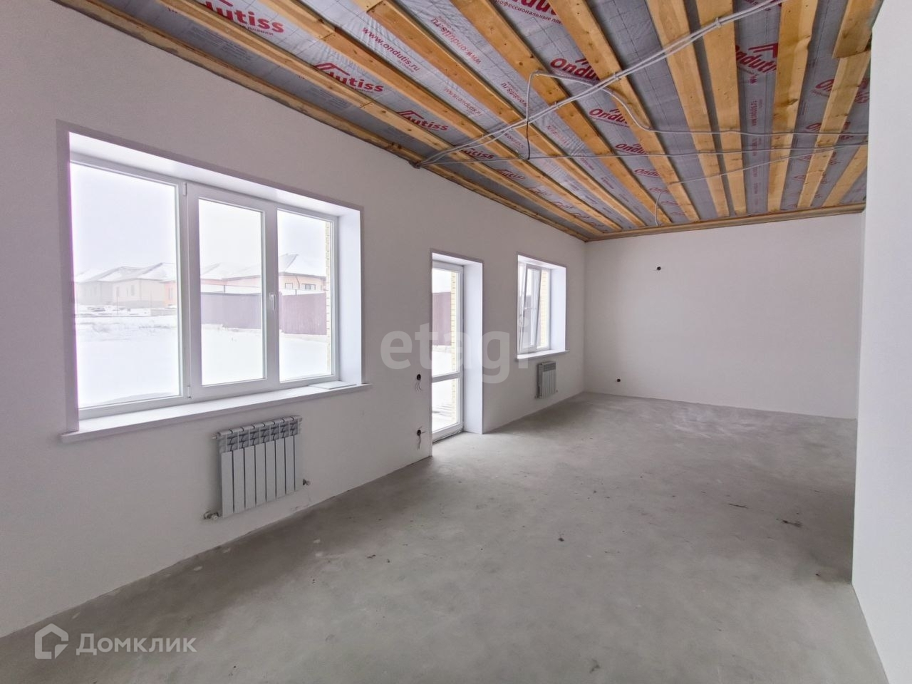 Внутренняя отделка под чистовую, установлены радиаторы и тёплый пол по всему дому.