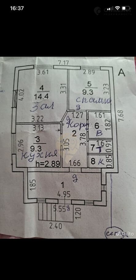 1 этаж: кухня, зал, спальня, ванная комната, туалет, кладовая.