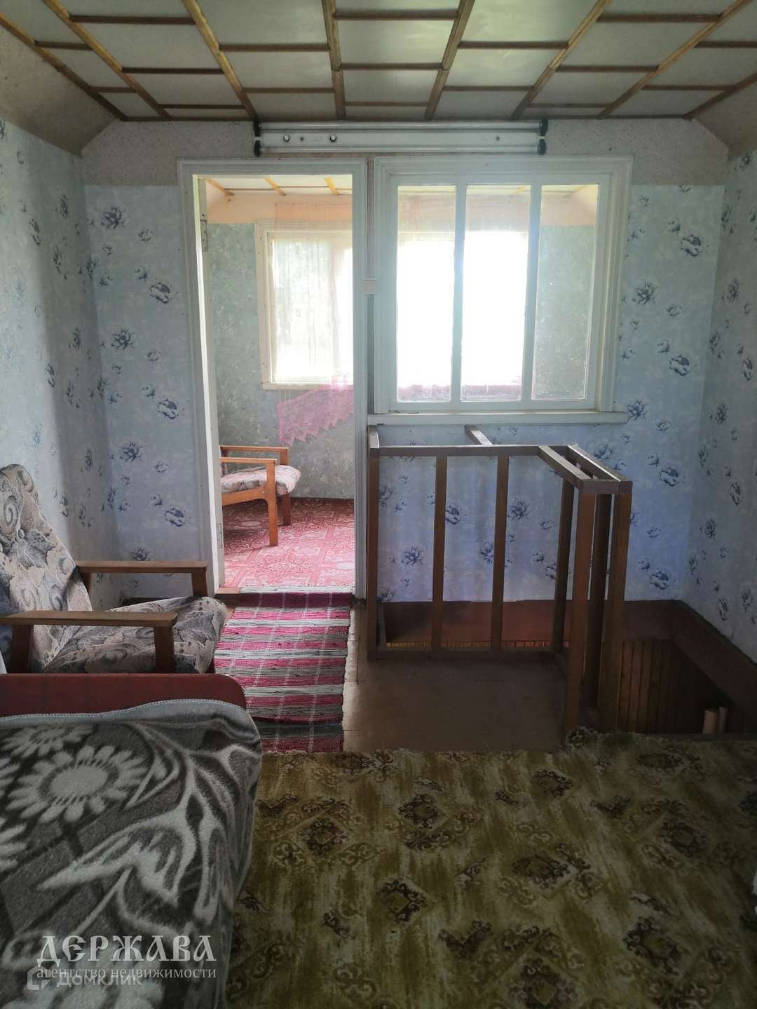 Планировка: коридор, погреб, кухня, две спальных комнаты (просторная комната на втором этаже), балкон.