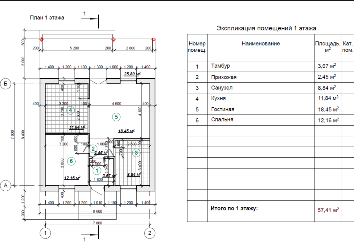 Общая площадь 57 м2
