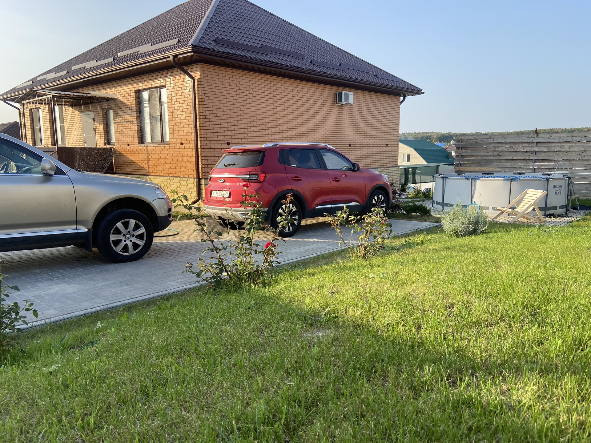 — Плавный двухуровневый участок позволяет сделать эстетичное зонирование территории: садовая зона при входной группе; парковочная площадка на две машины; зона бассейна; зона отдыха (веранда); фруктовый молодой сад; зона под овощи с высокими грядками.