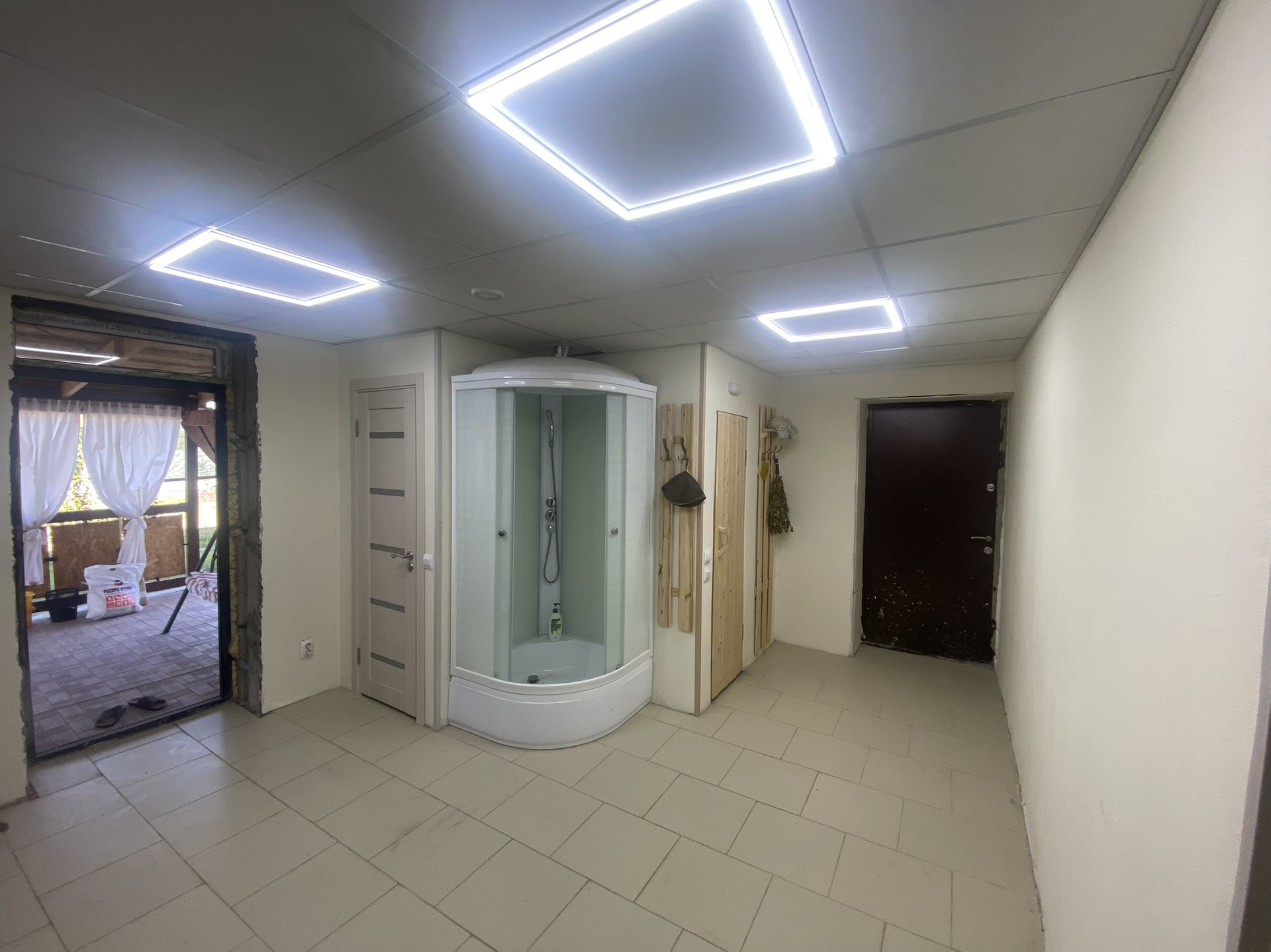 — Зона отдыха: помещение с кухонным гарнитуром и выходом на веранду; туалетная комната; душевая кабина; сауна.