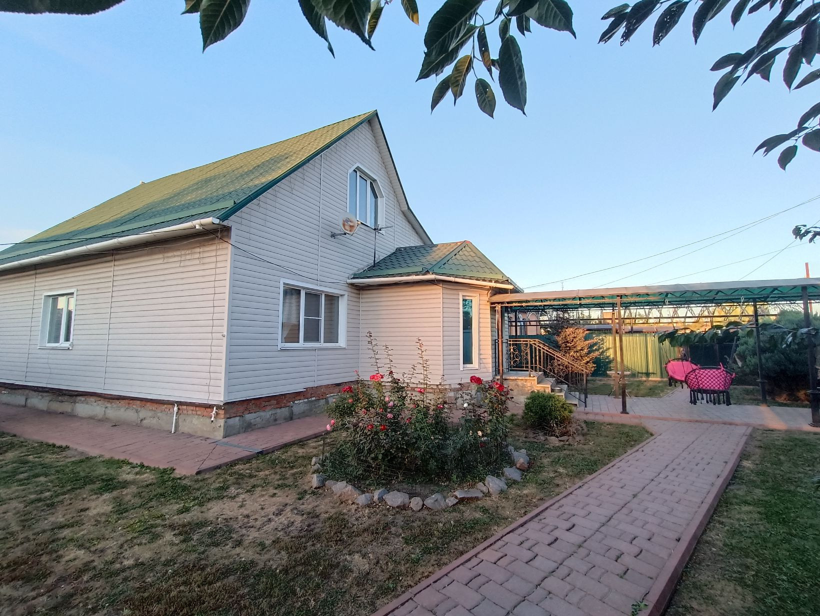 - Ухоженный участок с взрослыми плодоносящими деревьями.