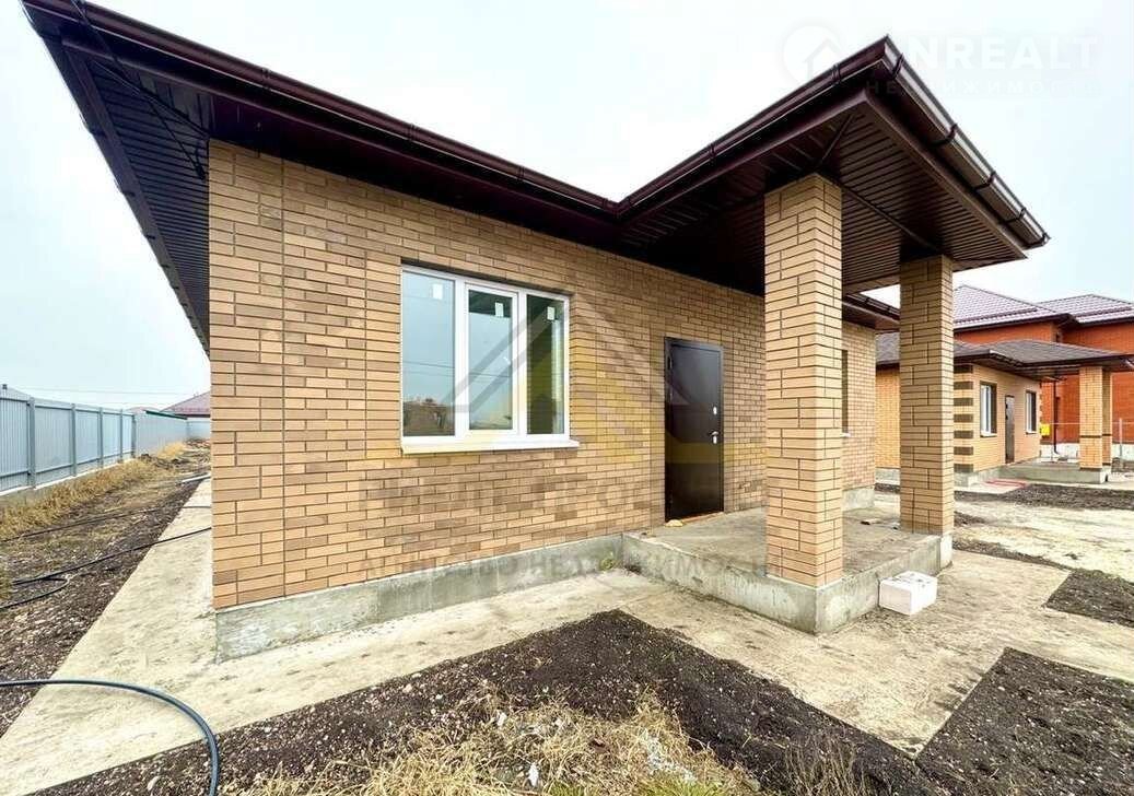 — Построен из газосиликатных блоков с утеплителем минватой и обложен облицовочным кирпичом. Фундамент ленточно-свайный. Крыша мягкая кровля. Крыльцо. Терраса.