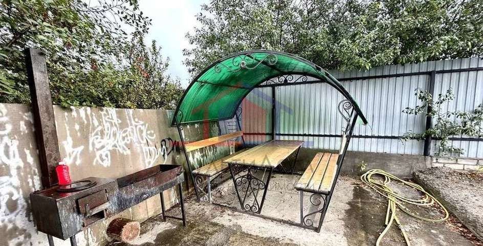 На территории : баня ( нагревается за 20 минут!), каркасный бассейн , хоз. постройка , беседка , асфальтированный заезд во двор , автоматические ворота , взрослые плодоносящие деревья, декоративные растения , лавочка