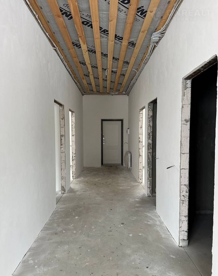 Внутри дома под финишную отделку. Стены подготовлены под поклейку обоев, чистовая стяжка пола.