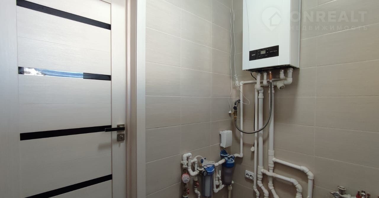 Проведены все коммуникации, теплые полы везде, радиаторы, на полу плитка - керамогранит.