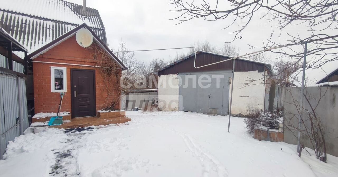 Во дворе блочный большой гараж со смотровой ямой.