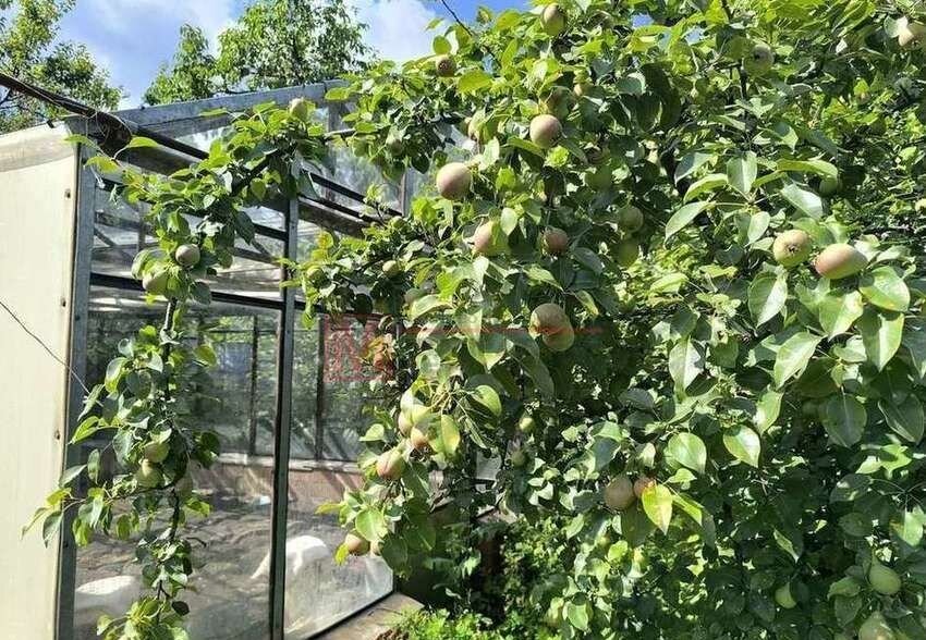 Участок ухожен, обрабатывается, имеется множество плодоносных деревьев.