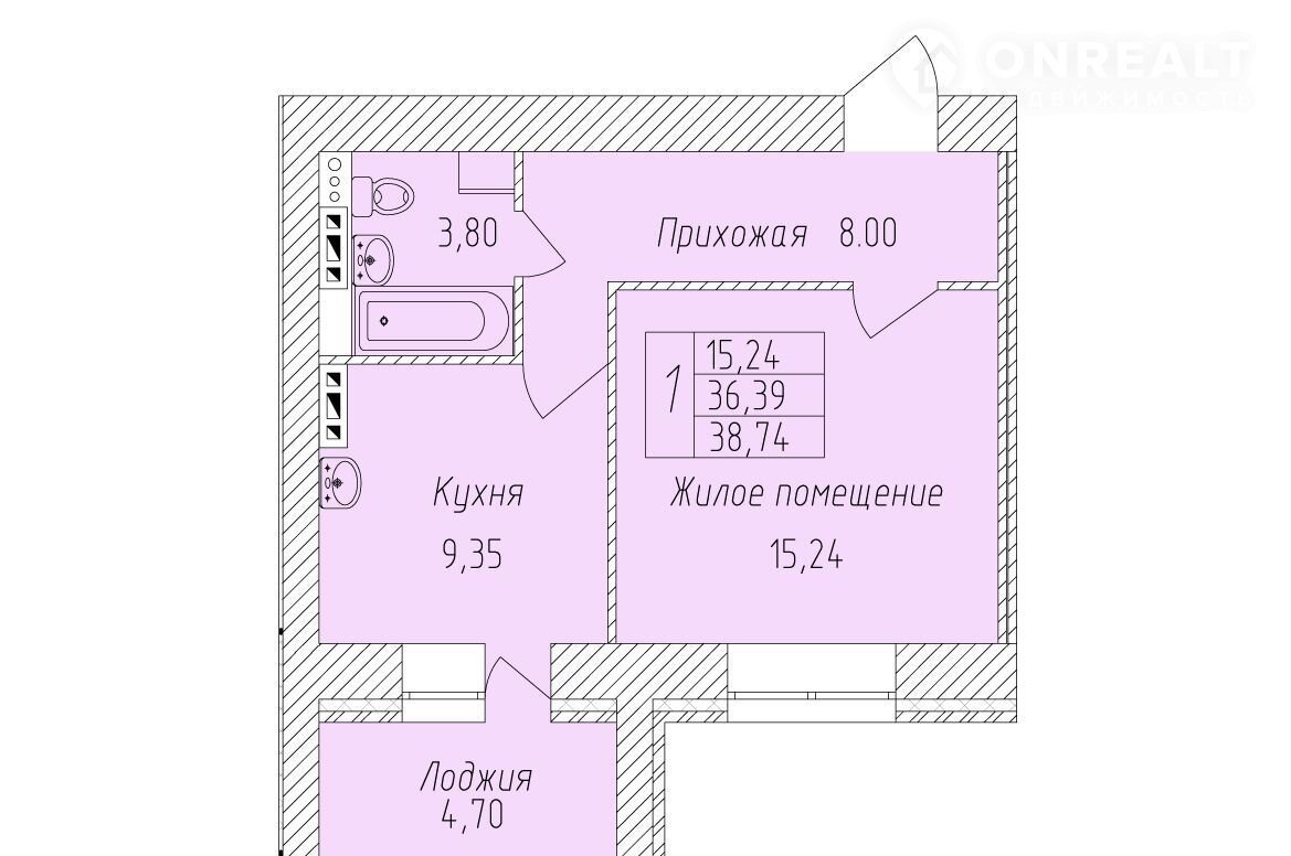 Общая площадь 38.7 м2