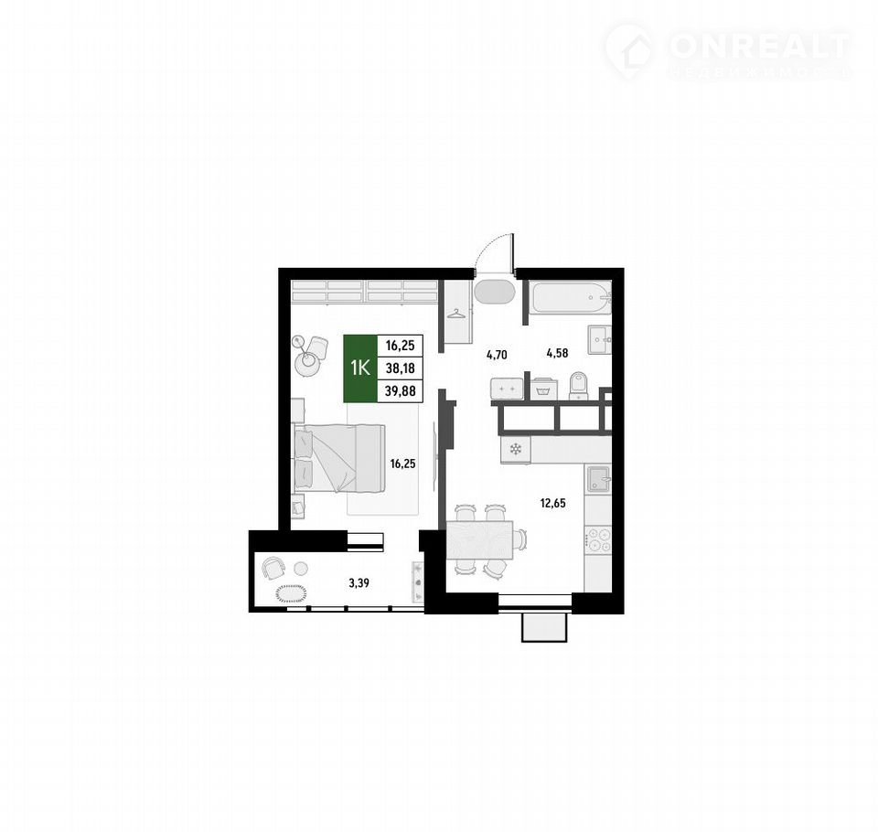 Балкон, лоджия 1 лоджия