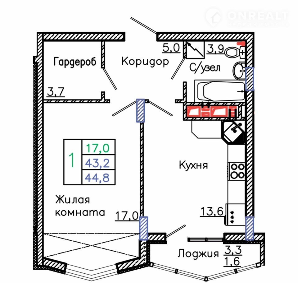 Общая площадь 44.8 м2
