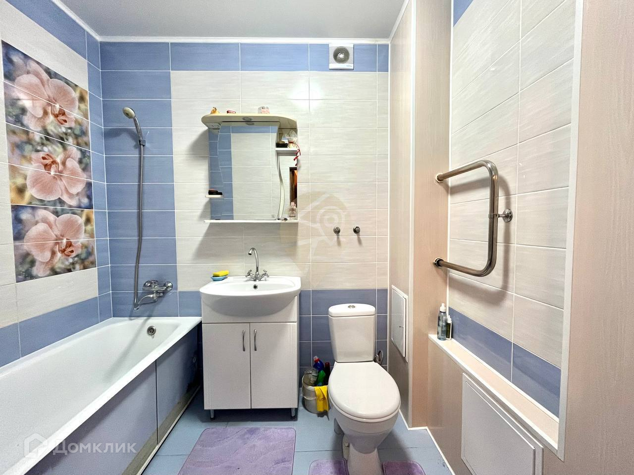 Санузел совмещенный в кафеле до потолка;