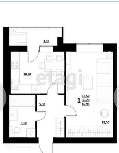 Общая площадь 41 м2