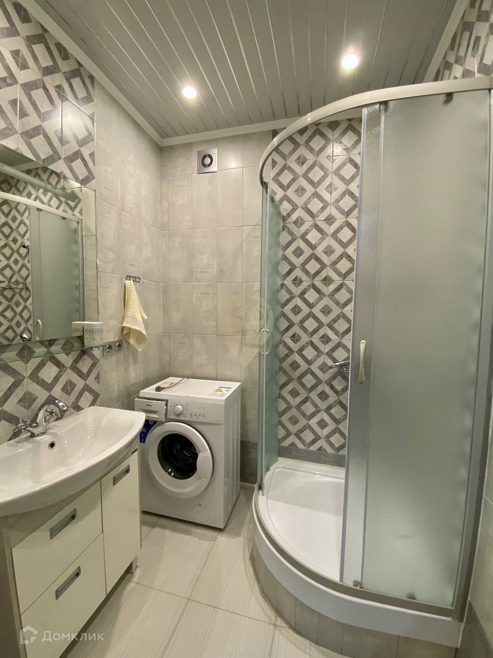Санузел раздельный в кафеле до потолка;